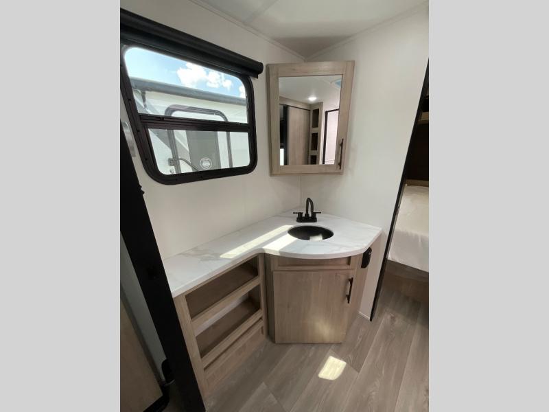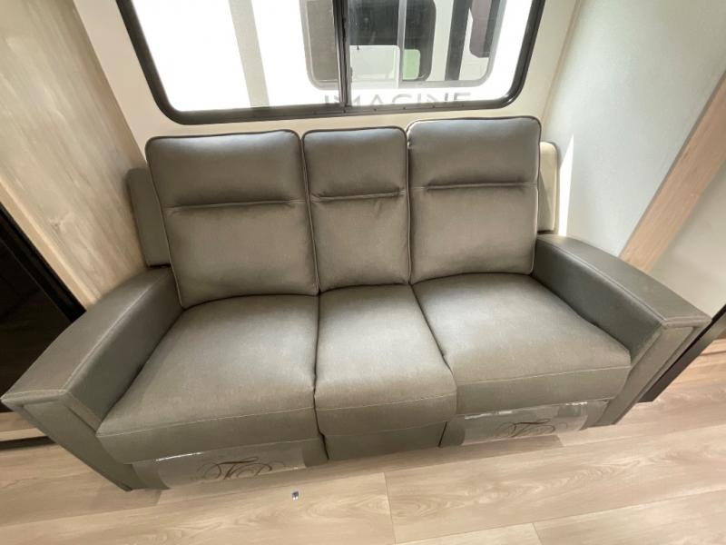 Treat yourself to a weekend of fun in this Imagine XLS travel trailer! Whether it's just you and your spouse, or you've chosen to bring along a group of friends, this trailer will meet the need. The front bedroom can sleep two people on the walk-around queen-size bed. The bedroom is quite functional because it not only contains the second exterior entry door, but it also has a private entrance into the walk-through bathroom since it is located on the other side of the bathroom. The booth dinette is functional too because it can transform from a dining location into a sleeping location, and the theater seating is directly across from the LED TV for easy viewing.