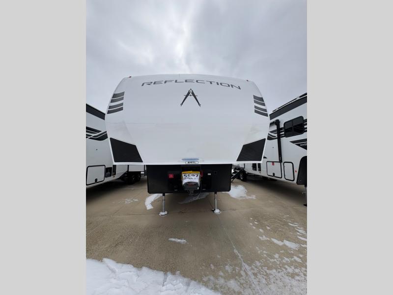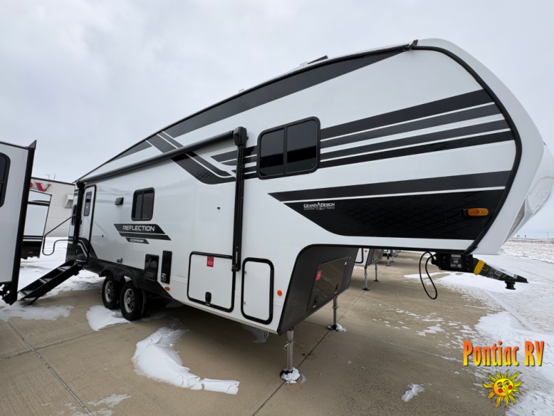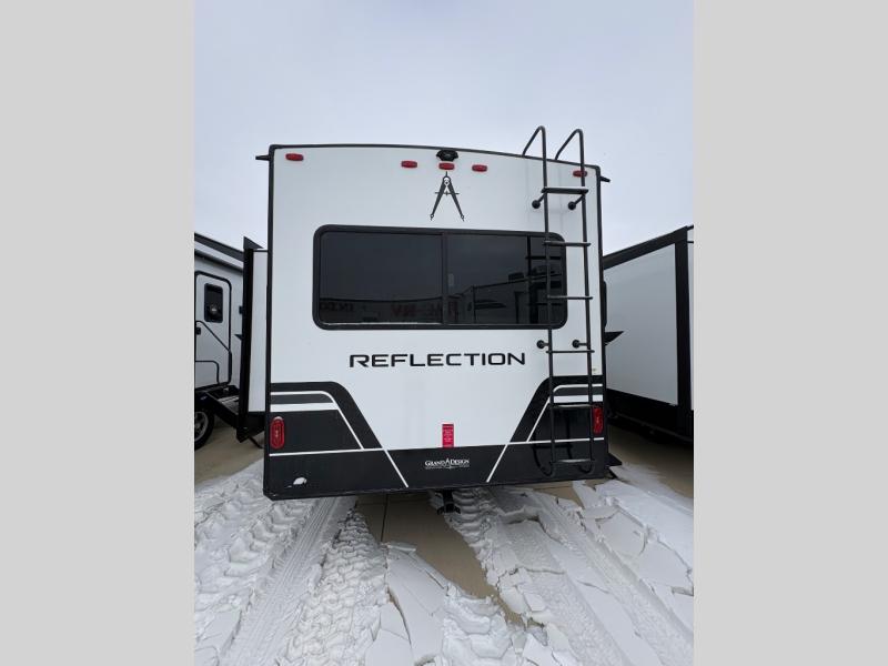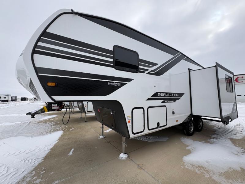 Each Reflection 100 Series fifth wheel by Grand Design is affordable and packed with luxury for unforgettable camping memories! The MorRyde CRE3000 suspension system and Goodyear Endurance tires will provide smooth towing from home to campground. And the solar package with a 180W solar panel, 60 Amp charge controller and 12V refrigerator will allow you to camp for longer periods of time and in more locations! A heated and enclosed underbelly with circulating heat is included in the Arctic 4-Seasons Protection Package, along with a double insulated roof and front cap, and thermofoil insulation under the holding tanks so you can camp all year long if you choose. You will appreciate having an on-demand water heater for hot showers after exploring, and the universal all-in-one docking station will let you monitor your RVs tanks levels and functions with ease. These models also include many luxurious interior features, such as premium Congoleum flooring, pleated shades, residential cabinetry, and matte black fixtures and hardware. Don't let the Reflection 100 Series fifth wheels pass you by!