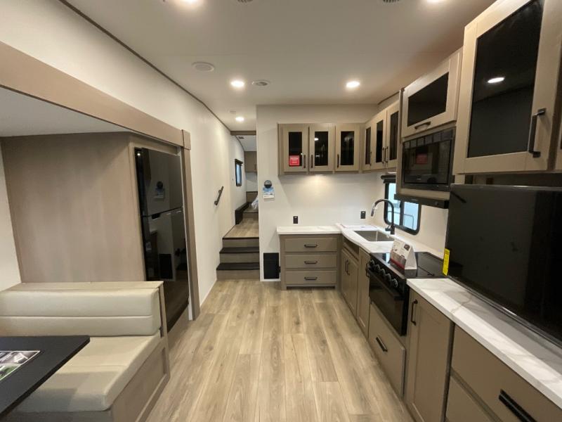 Each Reflection 100 Series fifth wheel by Grand Design is affordable and packed with luxury for unforgettable camping memories! The MorRyde CRE3000 suspension system and Goodyear Endurance tires will provide smooth towing from home to campground. And the solar package with a 180W solar panel, 60 Amp charge controller and 12V refrigerator will allow you to camp for longer periods of time and in more locations! A heated and enclosed underbelly with circulating heat is included in the Arctic 4-Seasons Protection Package, along with a double insulated roof and front cap, and thermofoil insulation under the holding tanks so you can camp all year long if you choose. You will appreciate having an on-demand water heater for hot showers after exploring, and the universal all-in-one docking station will let you monitor your RVs tanks levels and functions with ease. These models also include many luxurious interior features, such as premium Congoleum flooring, pleated shades, residential cabinetry, and matte black fixtures and hardware. Don't let the Reflection 100 Series fifth wheels pass you by!
