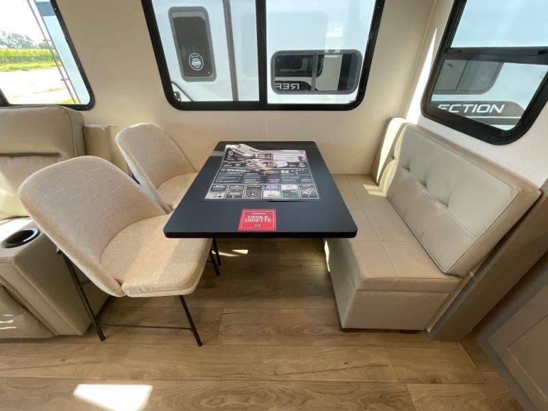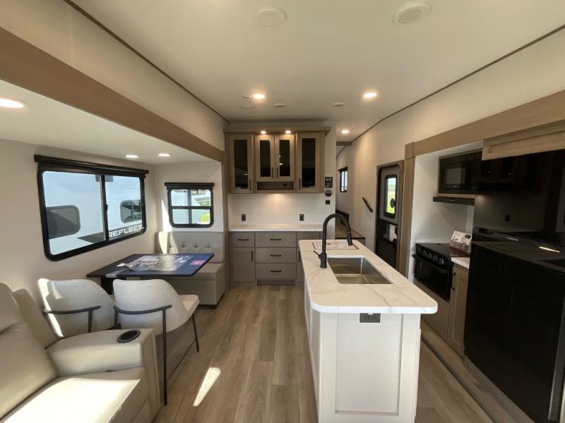 Each Reflection 100 Series fifth wheel by Grand Design is affordable and packed with luxury for unforgettable camping memories! The MorRyde CRE3000 suspension system and Goodyear Endurance tires will provide smooth towing from home to campground. And the solar package with a 180W solar panel, 60 Amp charge controller and 12V refrigerator will allow you to camp for longer periods of time and in more locations! A heated and enclosed underbelly with circulating heat is included in the Arctic 4-Seasons Protection Package, along with a double insulated roof and front cap, and thermofoil insulation under the holding tanks so you can camp all year long if you choose. You will appreciate having an on-demand water heater for hot showers after exploring, and the universal all-in-one docking station will let you monitor your RVs tanks levels and functions with ease. These models also include many luxurious interior features, such as premium Congoleum flooring, pleated shades, residential cabinetry, and matte black fixtures and hardware. Don't let the Reflection 100 Series fifth wheels pass you by!