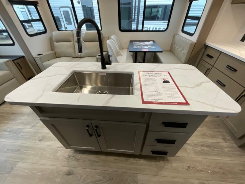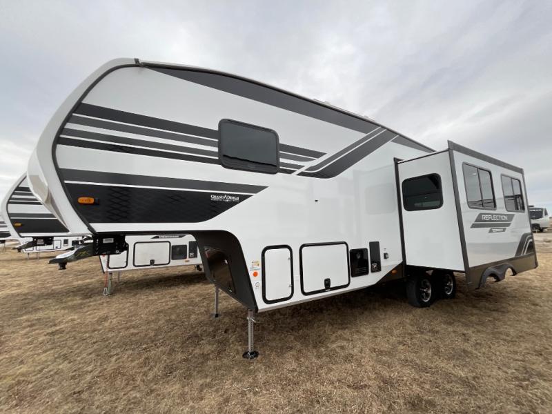 Each Reflection 100 Series fifth wheel by Grand Design is affordable and packed with luxury for unforgettable camping memories! The MorRyde CRE3000 suspension system and Goodyear Endurance tires will provide smooth towing from home to campground. And the solar package with a 180W solar panel, 60 Amp charge controller and 12V refrigerator will allow you to camp for longer periods of time and in more locations! A heated and enclosed underbelly with circulating heat is included in the Arctic 4-Seasons Protection Package, along with a double insulated roof and front cap, and thermofoil insulation under the holding tanks so you can camp all year long if you choose. You will appreciate having an on-demand water heater for hot showers after exploring, and the universal all-in-one docking station will let you monitor your RVs tanks levels and functions with ease. These models also include many luxurious interior features, such as premium Congoleum flooring, pleated shades, residential cabinetry, and matte black fixtures and hardware. Don't let the Reflection 100 Series fifth wheels pass you by!