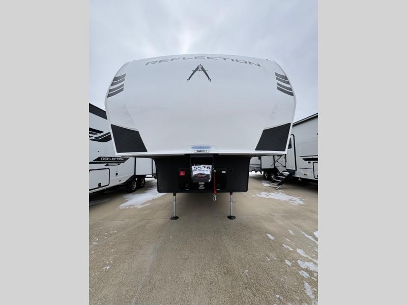 Each Reflection 100 Series fifth wheel by Grand Design is affordable and packed with luxury for unforgettable camping memories! The MorRyde CRE3000 suspension system and Goodyear Endurance tires will provide smooth towing from home to campground. And the solar package with a 180W solar panel, 60 Amp charge controller and 12V refrigerator will allow you to camp for longer periods of time and in more locations! A heated and enclosed underbelly with circulating heat is included in the Arctic 4-Seasons Protection Package, along with a double insulated roof and front cap, and thermofoil insulation under the holding tanks so you can camp all year long if you choose. You will appreciate having an on-demand water heater for hot showers after exploring, and the universal all-in-one docking station will let you monitor your RVs tanks levels and functions with ease. These models also include many luxurious interior features, such as premium Congoleum flooring, pleated shades, residential cabinetry, and matte black fixtures and hardware. Don't let the Reflection 100 Series fifth wheels pass you by!