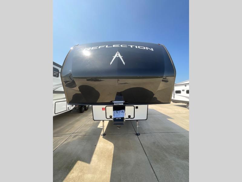 Feel right at home in this Reflection 150 Series with a private bedroom that includes a walk-around queen bed with storage on each side, windows, and a space savings sliding door. The full bathroom offers a walk-in shower, storage for your linens and a sliding door for easy access. When you get hungry, the cook will have an L-shaped kitchen area to make meals, plus full amenities including a 30" microwave, a flip-up counter extension, a pantry for your dry goods and a 16 cu. ft. refrigerator to store lots of food and cold beverages. You can dine at the rear U-shaped dinette lounge and enjoy the view out of all the windows or outside under the 18' electric awning. And the 78" theatre seating will be a nice place to relax and watch the 40" LED HDTV.