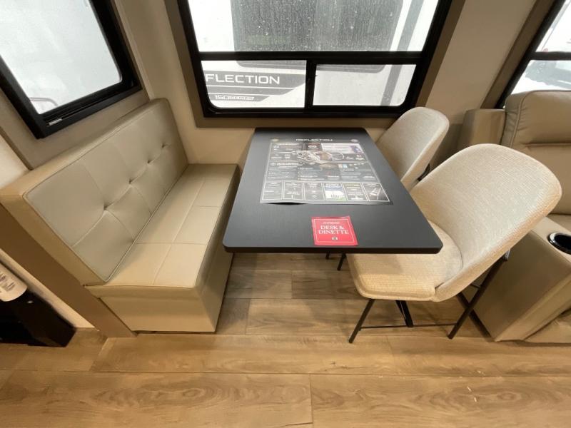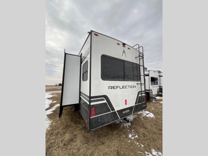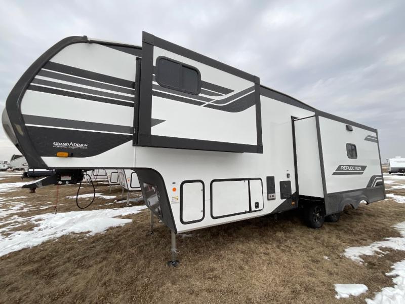 With any Reflection fifth wheel by Grand Design, you will have a solar panel for off-grid camping and a 60 amp charge controller and inverter prep, a Universal All-In-One docking station, unobstructed pass-through storage, and Goodyear Endurance tires. Each is constructed of gel coat exterior sidewalls, residential 5" truss rafters, walk-on roof decking, a fiberglass and radiant foil roof and front cap insulation plus laminated aluminum framed side walls, roof and end walls in slide rooms. Head inside to enjoy residential hardwood cabinet doors, premium Congoleum flooring, a spacious shower with a glass door, and many more comforts!