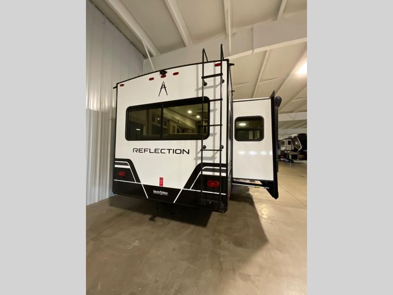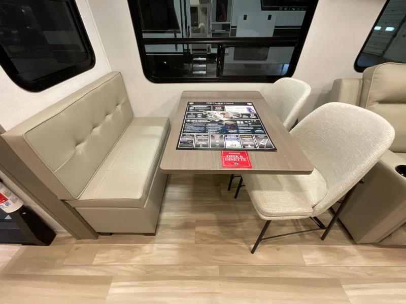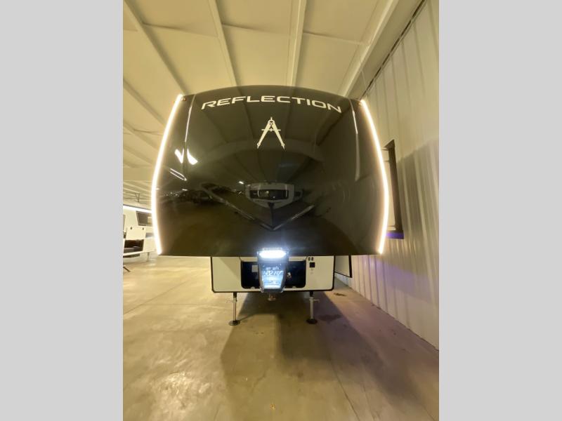 With any Reflection fifth wheel by Grand Design, you will have a solar panel for off-grid camping and a 60 amp charge controller and inverter prep, a Universal All-In-One docking station, unobstructed pass-through storage, and Goodyear Endurance tires. Each is constructed of gel coat exterior sidewalls, residential 5" truss rafters, walk-on roof decking, a fiberglass and radiant foil roof and front cap insulation plus laminated aluminum framed side walls, roof and end walls in slide rooms. Head inside to enjoy residential hardwood cabinet doors, premium Congoleum flooring, a spacious shower with a glass door, and many more comforts!