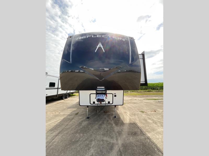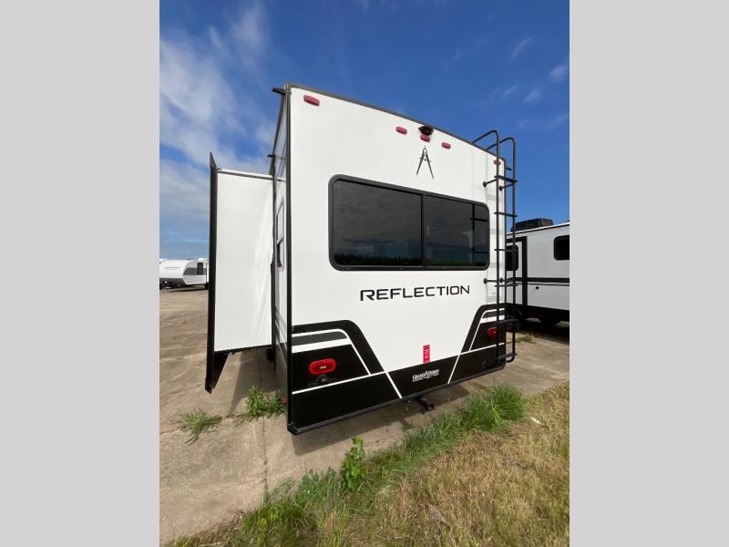 With any Reflection fifth wheel by Grand Design, you will have a solar panel for off-grid camping and a 60 amp charge controller and inverter prep, a Universal All-In-One docking station, unobstructed pass-through storage, and Goodyear Endurance tires. Each is constructed of gel coat exterior sidewalls, residential 5" truss rafters, walk-on roof decking, a fiberglass and radiant foil roof and front cap insulation plus laminated aluminum framed side walls, roof and end walls in slide rooms. Head inside to enjoy residential hardwood cabinet doors, premium Congoleum flooring, a spacious shower with a glass door, and many more comforts!