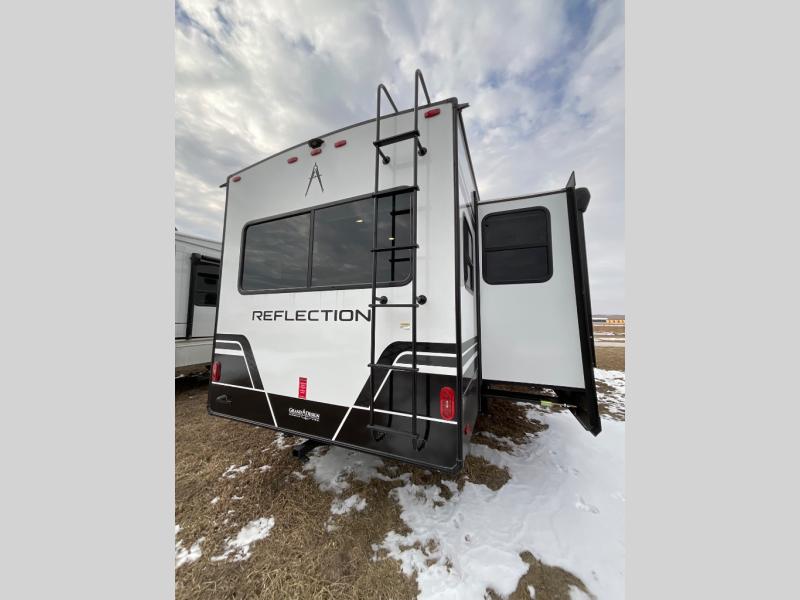 With any Reflection fifth wheel by Grand Design, you will have a solar panel for off-grid camping and a 60 amp charge controller and inverter prep, a Universal All-In-One docking station, unobstructed pass-through storage, and Goodyear Endurance tires. Each is constructed of gel coat exterior sidewalls, residential 5" truss rafters, walk-on roof decking, a fiberglass and radiant foil roof and front cap insulation plus laminated aluminum framed side walls, roof and end walls in slide rooms. Head inside to enjoy residential hardwood cabinet doors, premium Congoleum flooring, a spacious shower with a glass door, and many more comforts!