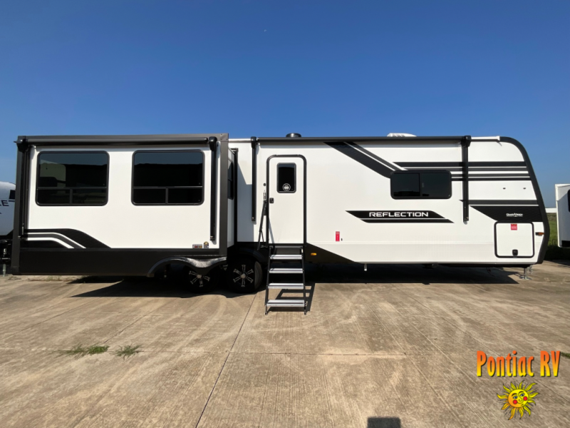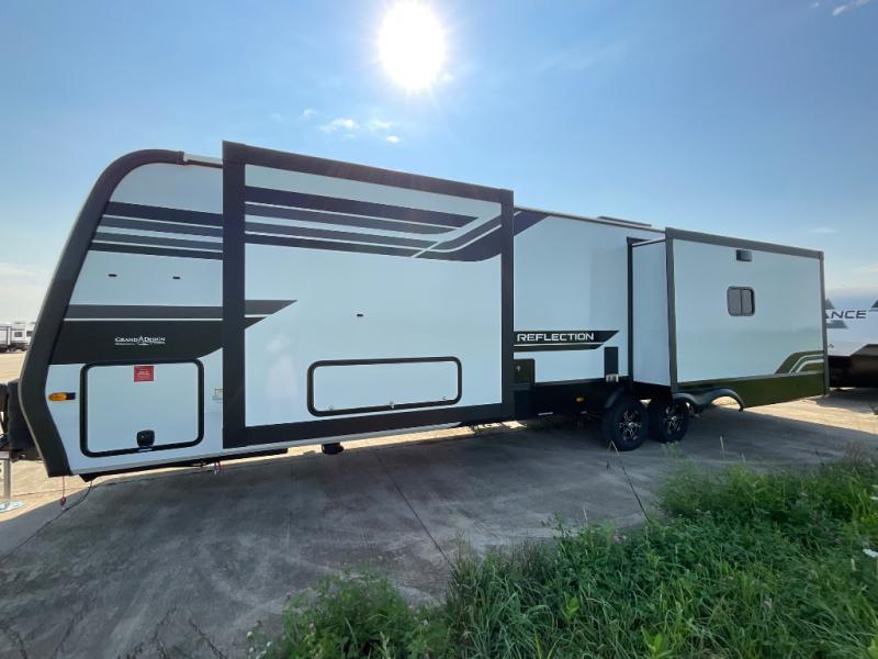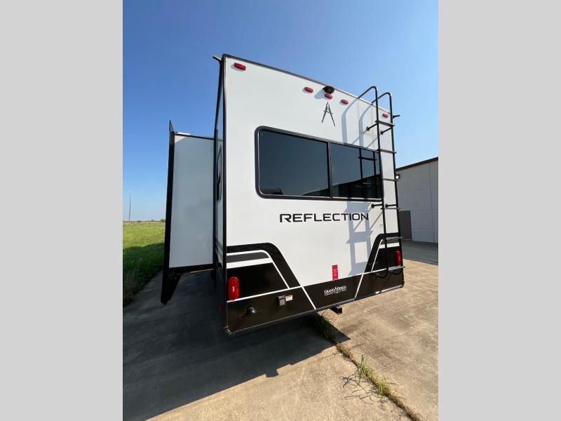 With any Reflection travel trailer by Grand Design, you will have a solar panel for off-grid camping and a 60 amp charge controller and inverter prep, a Universal All-In-One docking station, unobstructed pass-through storage, and Goodyear Endurance tires. Each is constructed of gel coat exterior sidewalls, residential 5" truss rafters, walk-on roof decking, a fiberglass and radiant foil roof and front cap insulation plus laminated aluminum framed side walls, roof and end walls in slide rooms. Head inside to enjoy residential hardwood cabinet doors, premium Congoleum flooring, a spacious shower with a glass door, and many more comforts!