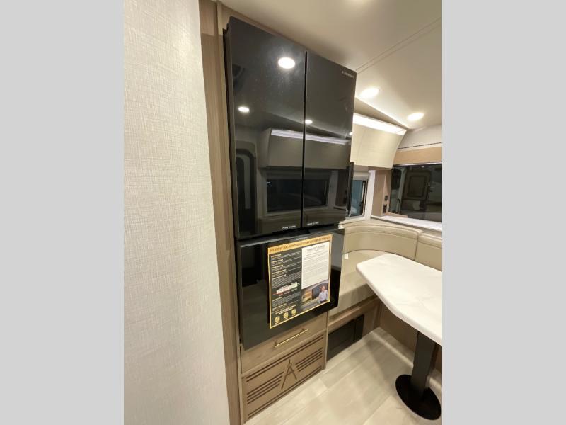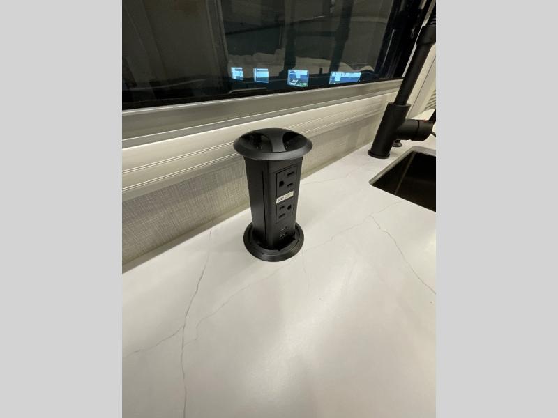 With any Serenova travel trailer by Grand Design, you will enjoy a smooth tow and at-home comforts wherever you decide to roam. There is a MORryde independent suspension plus MORryde shock, Goodyear Endurance tires, and Dexter tow assist with an anti-lock braking system and sway control for optimal handling. To help extend your camping season, there is an enclosed underbelly, a dedicated heat source with Thermafoil, heated dump valves plus thermostatically controlled 12V heating pads. Inside, you'll love the look of the imported Italian cabinetry, and there is a Klipsch whole home Bluetooth speaker so you can listen to your favorite tunes at the campground!