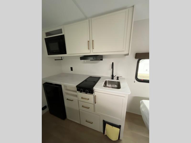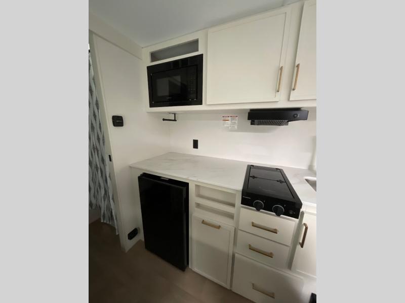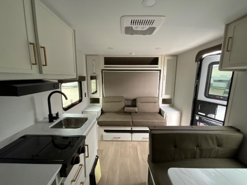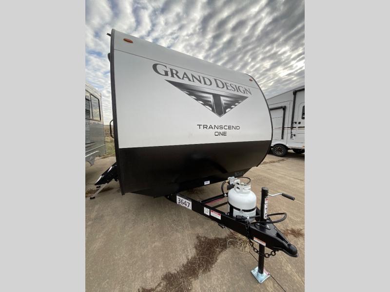 With any Transcend One travel trailer by Grand Design, you will enjoy lightweight towing thanks to their single-axle. There are many interior comforts to make camping easier than ever, such as recessed lighting, residential countertops, and a 6' 6" interior height. Each model is constructed with a heated and enclosed underbelly with suspended tanks, a moisture barrier floor enclosure, and Thermofoil over the roof and front cap for added protection. And a JBL sound system will let you listen to tunes as you visit under the power awning with a Fusion light!