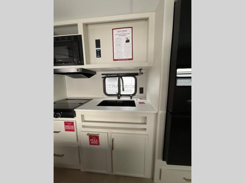 The customer-focused, quality-built Transcend Xplor travel trailers by Grand Design are your ticket to fun and adventure. You will appreciate the power tongue jack when it comes time to set up, as well as the all-in-one utility center and the detachable power cord with an LED light. These models include many outlets throughout, USB ports to charge your gadgets, and a JBL exterior speaker to listen to your favorite tunes. The interior of the Transcend Xplor will have you feeling right at home with upgraded residential furniture, residential countertops, residential cabinet doors, and the list goes on!