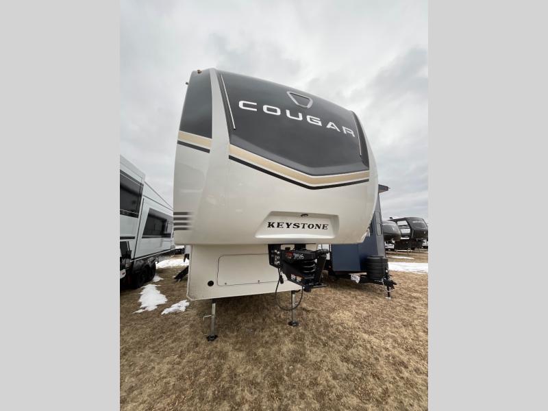 Spend more time having fun and less time worrying about your RV with the Keystone Cougar fifth wheel! These units have all that you will need for excellent vacations. The interior comes hardwood cabinet doors, solid surface kitchen countertops, an Oxygenics shower head and hose, plus a Vent-All window system. You will also appreciate the 12V charging stations throughout, the dual zone Bluetooth audio system, and the on-demand water heater for added comfort. The exterior is also fully outfitted with a convenience center, MaxTurn technology, Lippert axles with anti-lock braking system, and a Curt Road Armor shock absorbing equalizer for smooth towing. Each model is available with the optional Hero Edition. By choosing this edition, you can help support our nation's heros and their families by contributing to the Wounded Warrior Project. This optional package features an industry exclusive full-body paint matte finish, frameless windows, a glass entry door, blackout rims, and green LED exterior accent lighting; see dealer for more details!