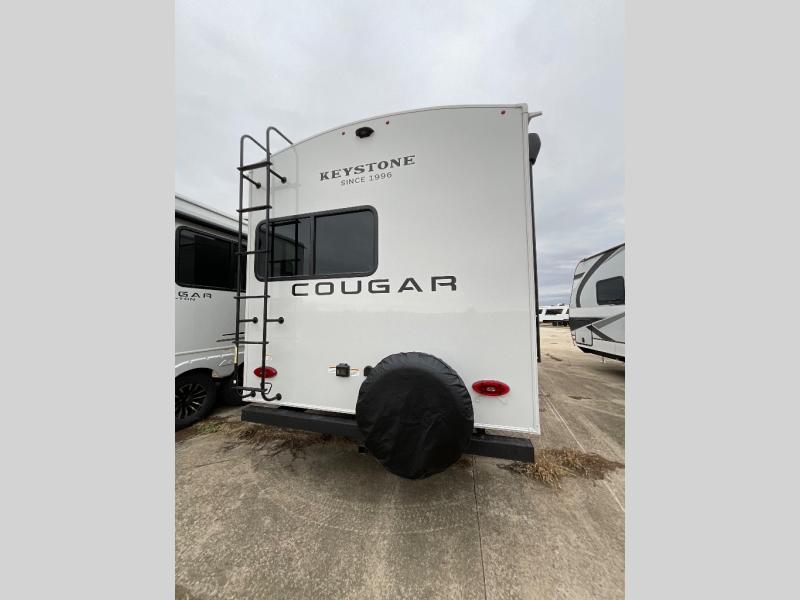 The Keystone Cougar Half-Ton fifth wheel and travel trailers are known as one of America's favorites for a reason! Some of those reasons are the exclusive features that come from Keystone, like the Winegard Air 360+ omni-directional rooftop antenna, the in-floor heating ducts, and the HyperCore composite wall construction with Vixen Fibrogloss high-gloss finish. The Cougar Half-Ton has a Climate Guard protection package with heat-deflecting white sidewalls, two roof attic vents, PEX plumbing and more to enjoy four season camping. Inside, you'll love the dimmable lighting, night roller shades throughout, shower skylight, and bedside USB outlets to keep your electronics charged.