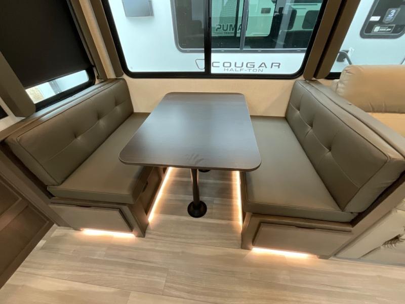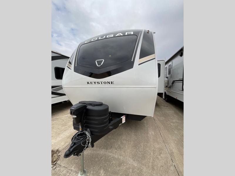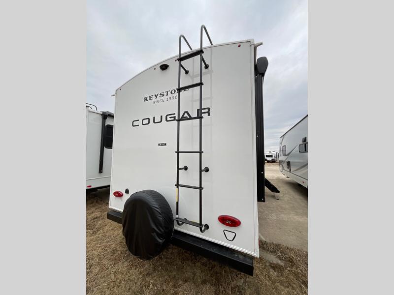 The Keystone Cougar Half-Ton fifth wheel and travel trailers are known as one of America's favorites for a reason! Some of those reasons are the exclusive features that come from Keystone, like the Winegard Air 360+ omni-directional rooftop antenna, the in-floor heating ducts, and the HyperCore composite wall construction with Vixen Fibrogloss high-gloss finish. The Cougar Half-Ton has a Climate Guard protection package with heat-deflecting white sidewalls, two roof attic vents, PEX plumbing and more to enjoy four season camping. Inside, you'll love the dimmable lighting, night roller shades throughout, shower skylight, and bedside USB outlets to keep your electronics charged.