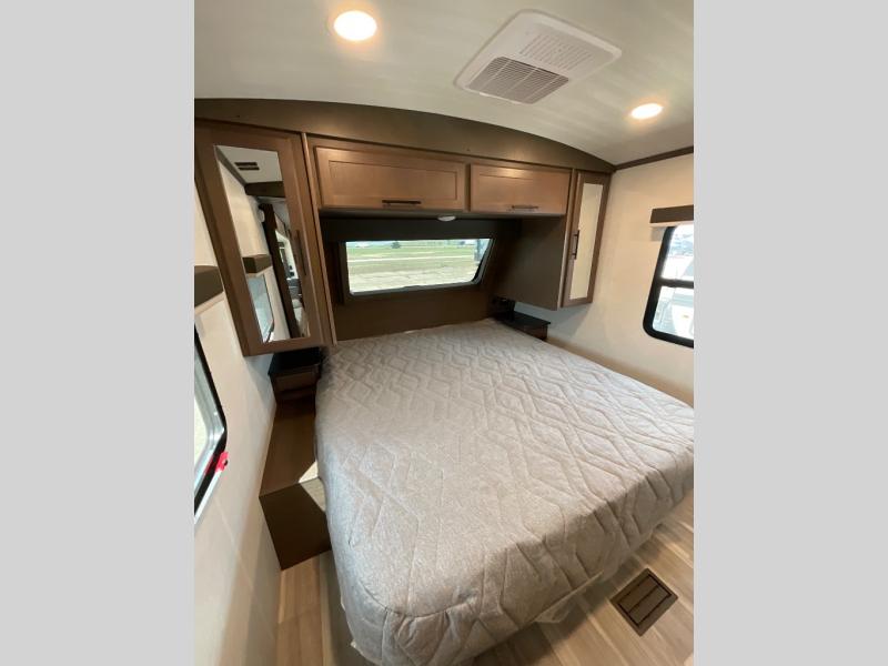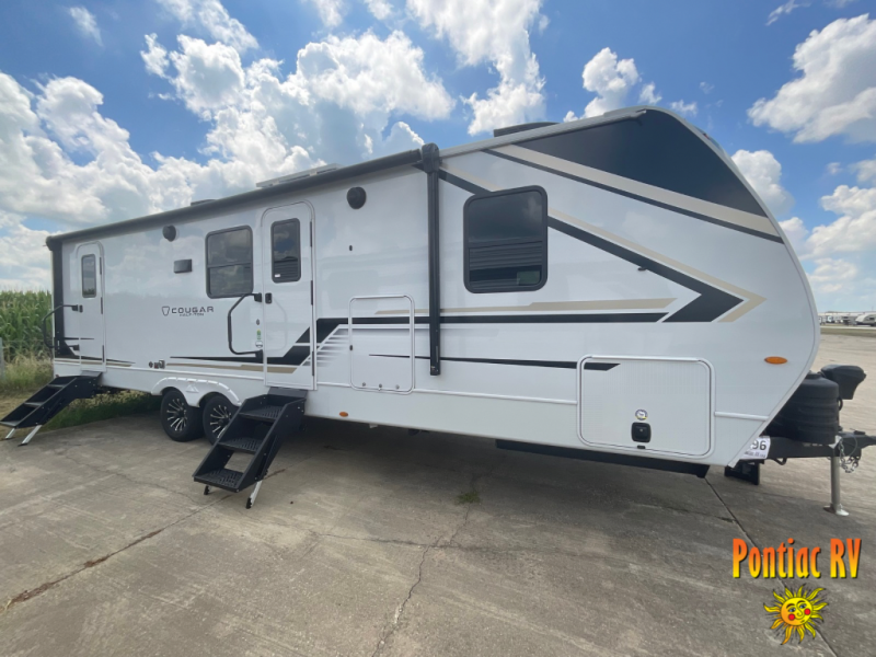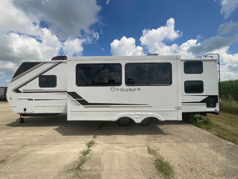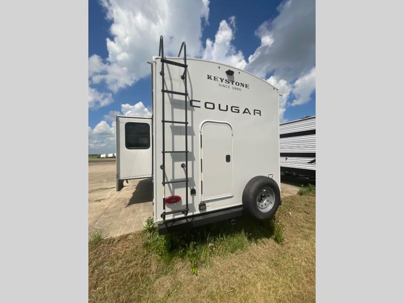 The Keystone Cougar Half-Ton fifth wheel and travel trailers are known as one of America's favorites for a reason! Some of those reasons are the exclusive features that come from Keystone, like the Winegard Air 360+ omni-directional rooftop antenna, the in-floor heating ducts, and the HyperCore composite wall construction with Vixen Fibrogloss high-gloss finish. The Cougar Half-Ton has a Climate Guard protection package with heat-deflecting white sidewalls, two roof attic vents, PEX plumbing and more to enjoy four season camping. Inside, you'll love the dimmable lighting, night roller shades throughout, shower skylight, and bedside USB outlets to keep your electronics charged.