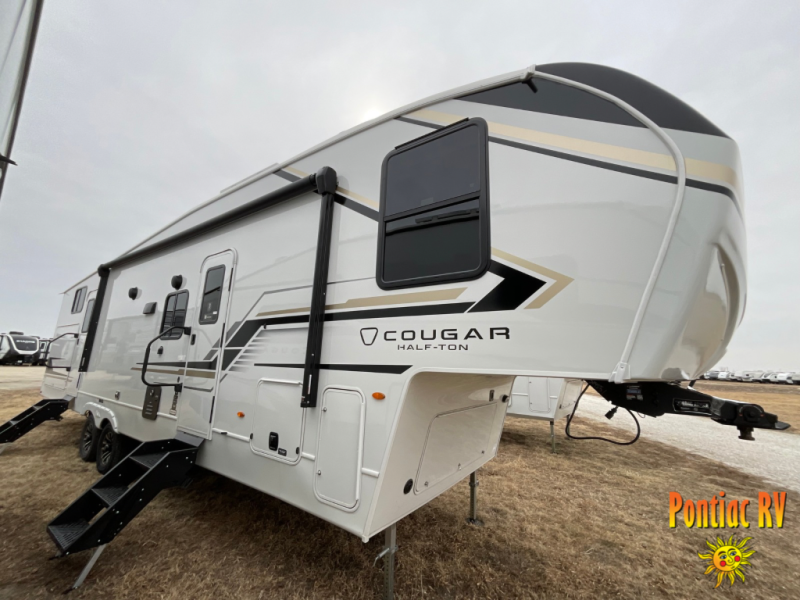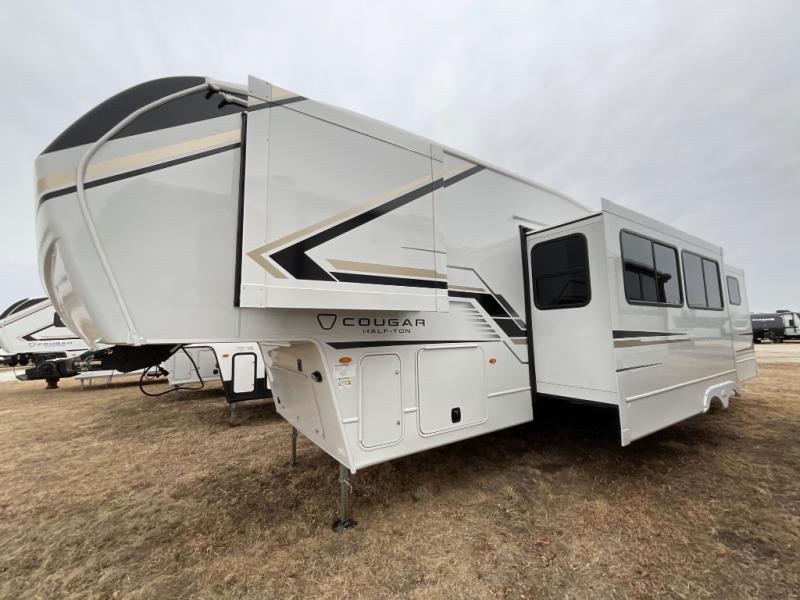 The Keystone Cougar Half-Ton fifth wheel and travel trailers are known as one of America's favorites for a reason! Some of those reasons are the exclusive features that come from Keystone, like the Winegard Air 360+ omni-directional rooftop antenna, the in-floor heating ducts, and the HyperCore composite wall construction with Vixen Fibrogloss high-gloss finish. The Cougar Half-Ton has a Climate Guard protection package with heat-deflecting white sidewalls, two roof attic vents, PEX plumbing and more to enjoy four season camping. Inside, you'll love the dimmable lighting, night roller shades throughout, shower skylight, and bedside USB outlets to keep your electronics charged.