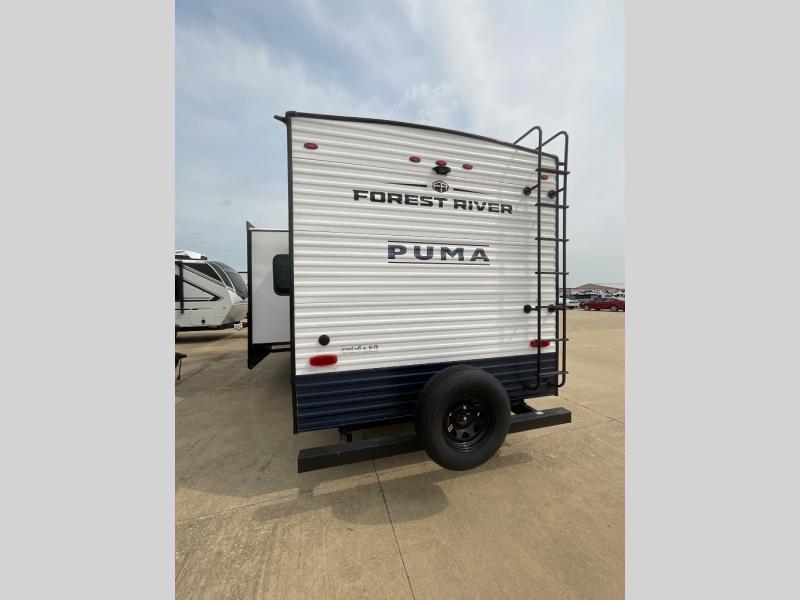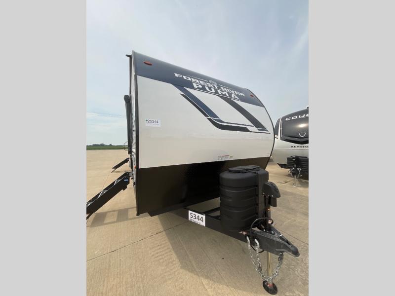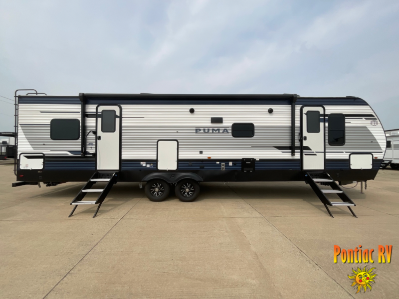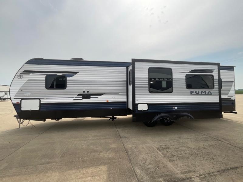If you're looking for family-fun adventures then you need one of these Palomino Puma fifth wheels or travel trailers! They are built rugged, easy to tow, and jam packed with features. The Darco wrapped underbelly will protect your units vitals and the AlphaPly roofing membrane covers it. They also have new aluminum wheels and a powder coated steel I-beam frame. Inside, the Congoleum linoleum will be easy to keep clean, and the night roller shades will provide privacy when it's time to turn in. You'll also enjoy an electric awning with an LED light strip plus an AM/FM/Bluetooth stereo and two outside speakers to keep the party going!