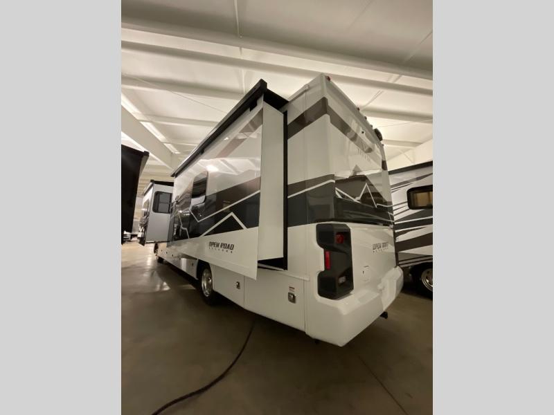 Every one of these Tiffin Motorhomes Open Road Allegro Class A gas motorhomes are ready to go when ever you are! A Ford 7.3L V8 engine powers these units and a durable, yet lightweight, tubular aluminum wall skeleton holds them together. They are beautifully designed with handcrafted cabinetry and a panoramic kitchen galley window for breathtaking views. A couple electronic features you will appreciate include an exterior TV with a soundbar and a Spyder multiplex system, plus there are two 13.5k BUT AC units to keep you cool on those hot summer days. The color back-up camera and side-view cameras will make parking easier than ever, and you'll appreciate hydraulic leveling jacks with a control panel for hassle-free set up. You'll love the new decor options, along with the new Generation 12 exterior color paint options, plus a 10" detachable touchscreen with a media center!