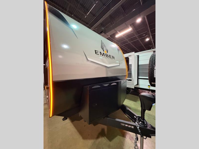 With any Touring Edition travel trailer by Ember RV, you will enjoy hassle-free towing thanks to the CURT Touring coil suspension system and Goodyear Endurance tires. There are laminated Azdel Onboard composite walls, a fully walkable roof with one-piece Tufflex PVC roofing, and a gel-coated fiberglass exterior for added durability. You will also find dual-pane acrylic caravan windows, upgraded plumbing, a mandatory Off-Grid Solar Package, and a mandatory Ground Control TT3 auto-leveling and stabilization system for easy set up. Head inside to enjoy hardwood maple cabinet doors, solid surface countertops in the kitchen and bath, dimmable LED lighting, and Congoleum DiamondFlor "carpetless" interior, perfect to withstand your adventurous lifestyle!