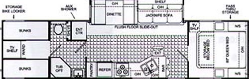 Bunk House, Single Slide, Sleeps 10, Queen Bed, 2 Sets of Bunk Beds, Jacknife Sofa, Dinette, Refer, Stove, Micro, Optional Tub, Aux Shower and much more!