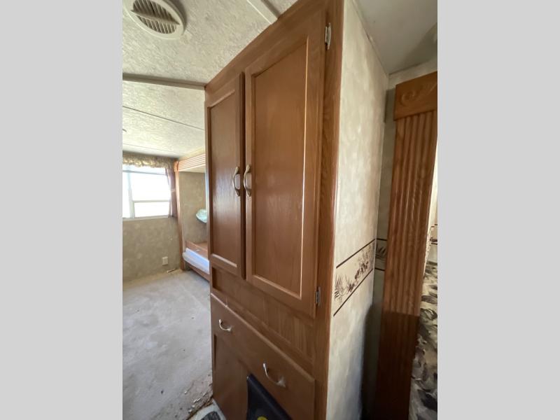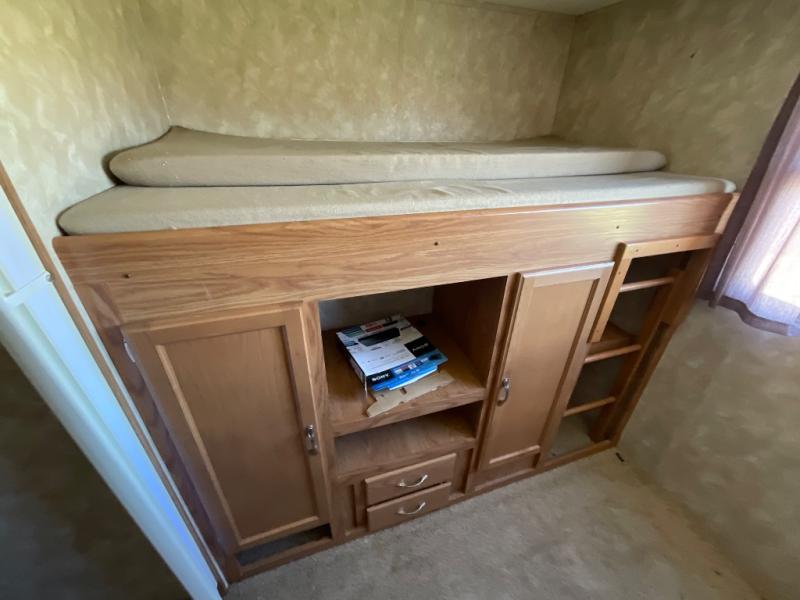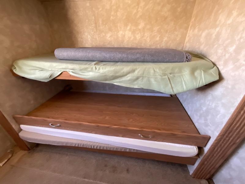 AS ISDouble Slide, Rear Bunkhouse w/Slideout Bunks w/Lower Oversized and Trundle Below, Ent. Center Wardrobe w/Bunk & Storage, Wardrobe, Tub/Shower, Lav., U-Shaped Dinette, Sofa, Dbl. Kitchen Sink, Pantry, Refrig., Rotating 20" LCD TV, Front Queen Bed w/Shirt Closets Above Nightstands & More.