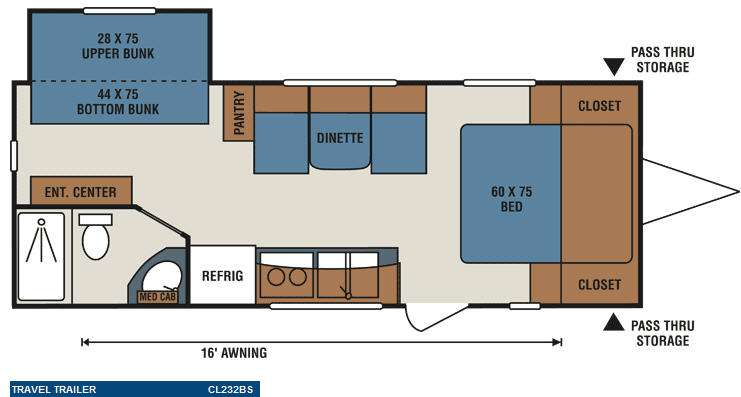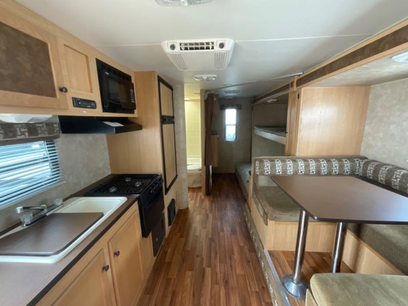 Single Slide Coyote Lite Bunkhouse Travel Trailer, Rear Slide Out w/Lower & Upper Bunk Beds, Rear Corner Bath w/Toilet, Tub/Shower & Lav., Refrigerator, 3 Burner Range, Double Kitchen Sink, Pantry, Booth Dinette, Front Queen Bed, Closets, Front Pass Thru Storage, 16' Awning and More.