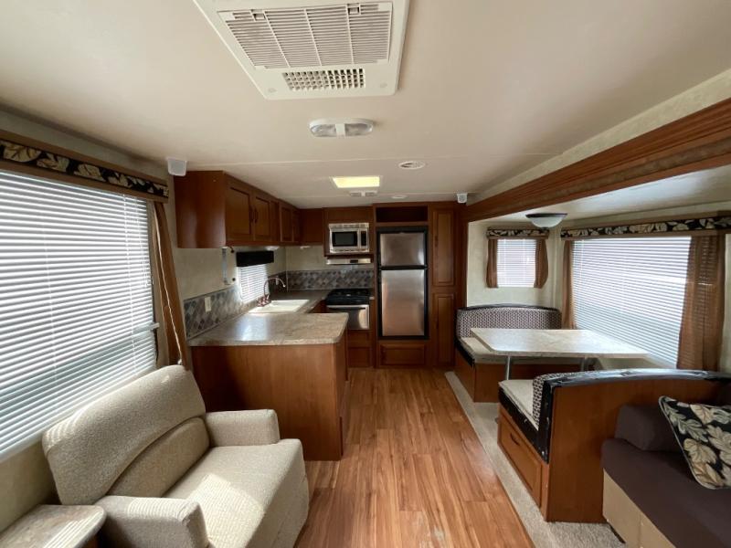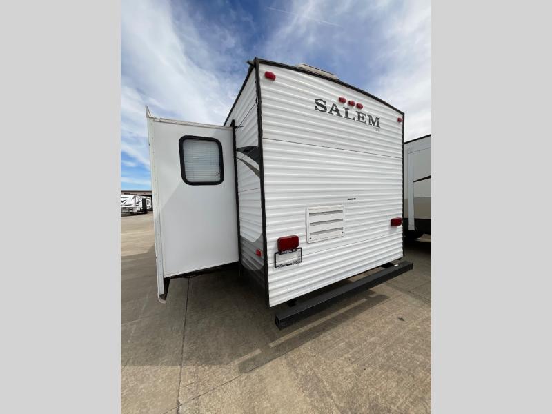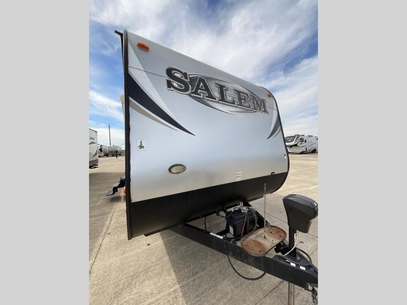 Single Slide Salem Travel Trailer, Rear Kitchen w/Pantry, Refrigerator, 3-Burner Range, Microwave, Double Kitchen Sink, 2-Lounge Chairs w/End Table, Dinette/Sofa Slide, Toilet, Ward., Neo-Angle Shower, Lav., Med. Cab., Queen Bed, Double Wardrobes w/Drawers, Overhead Cabinets Throughout, Pass-Thru Storage & Much More.