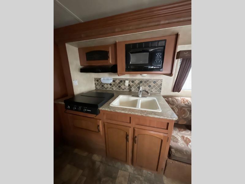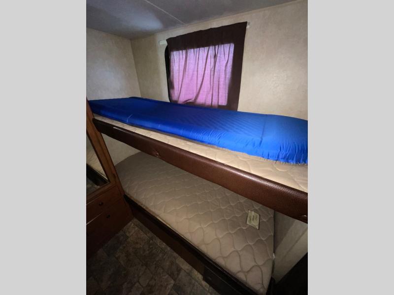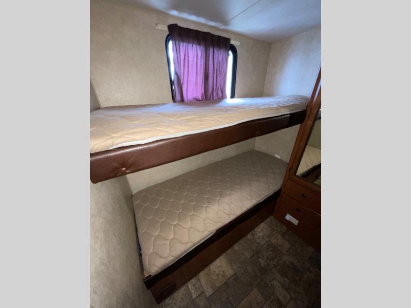 Single Slide Salem Cruise Lite Travel Trailer, Rear Double Bunk Beds, Ward., Refrigerator, 3-Burner Range/Dbl. Kitchen Sink/Microwave/Sofa Slide, Swivel Box, Queen Bed, Dbl. Wardrobes, Dinette, Toilet, Lav., Med. Cab., Tub, Overhead Cabinets Throughout, Pass Thru Storage, 16' Awning & Much More. Available Options May Include: Outside Kitchen.