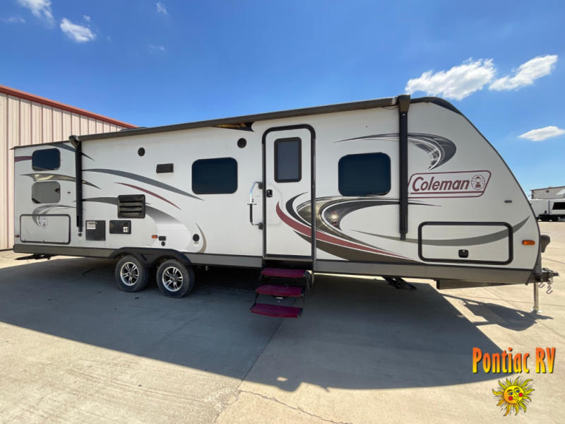 Outside entry from either side, a slide out and bunk beds are just some of the features of the Coleman Explorer 281BH travel trailer.