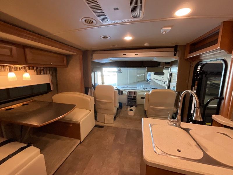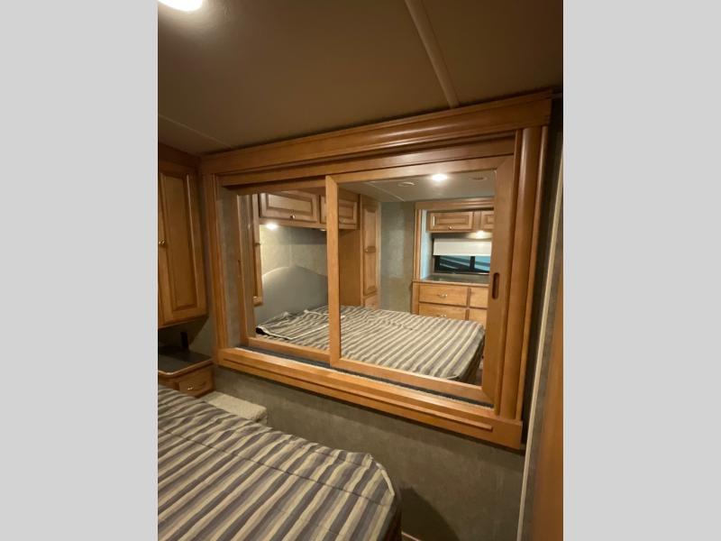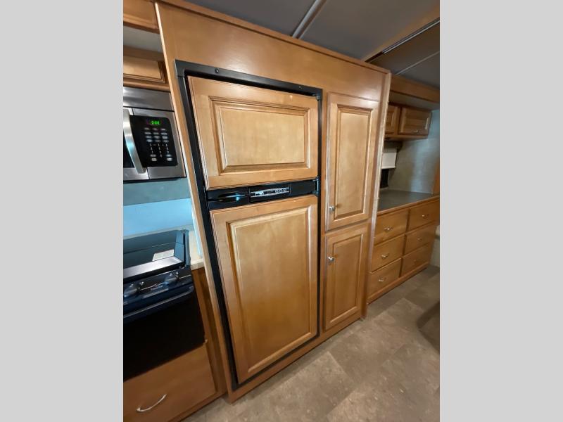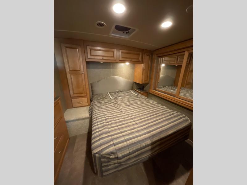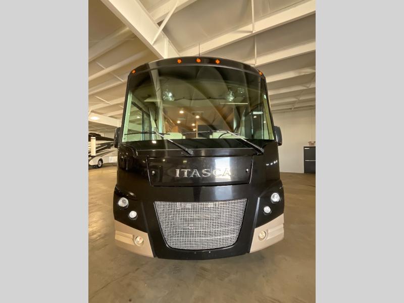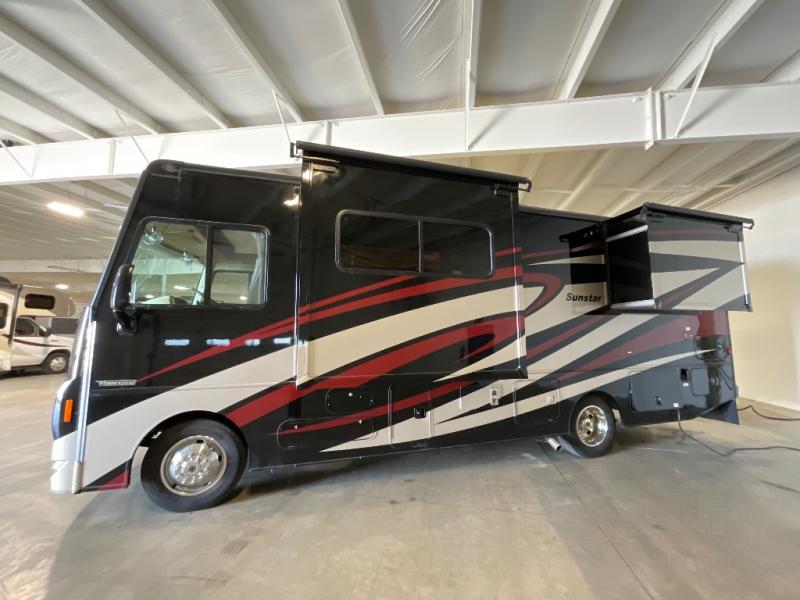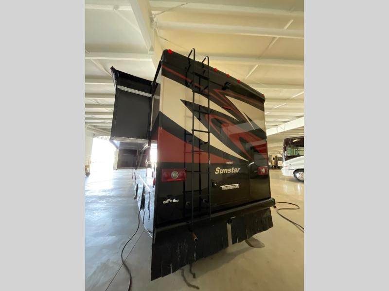 This Itasca Sunstar LX class A gas coach 27N features triple slides for added interior space, with the passenger side being almost a complete wall slide out.