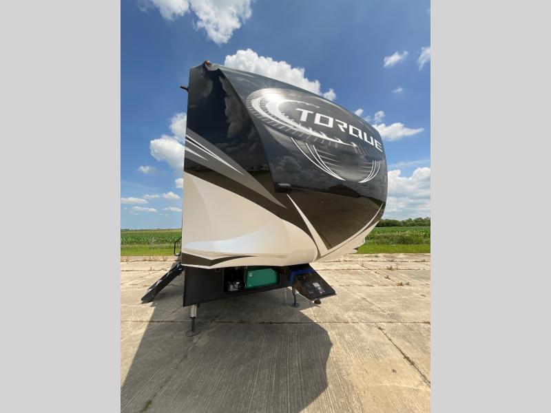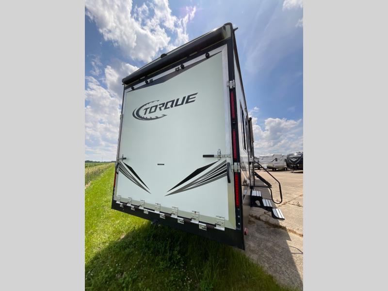 Come load up a few off-road toys, your family, and your camping gear needed for a week and head on out to your favorite campground with this Torque toy hauler fifth wheel 371 by Heartland. In the 13' garage you can easily store a few dirt bikes or an ATV. Your kids will enjoy the loft above the garage, and below there is a convenient half bathroom near the garage side door. Once you are done playing on the trails, then come back and easily fix a snack or your evening meal in the outside kitchen which features a two burner range and a sink.