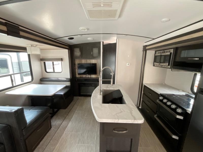This Surveyor 266RLDS travel trailer is the same as model 265RLDS except that this model features a residential refrigerator! The dual opposing slide outs provide plenty of space to move around, and you'll love that the kitchen island features a sink as well as extra counter space for meal prep or clean up. The walk-through bathroom leads to the private front bedroom where you will find a queen bed with storage below plus more storage with the large overhead cabinets and wardrobes. Outside there is a pass-through storage area for your exterior camping gear and the 18' electric awning with a light bar provides plenty of shade plus gives you a nice outdoor living space while you watch the kiddos play!