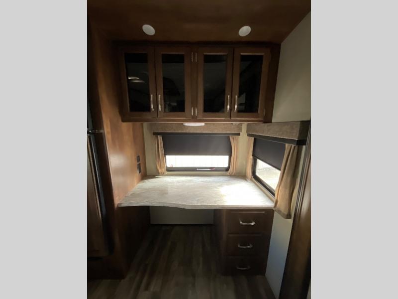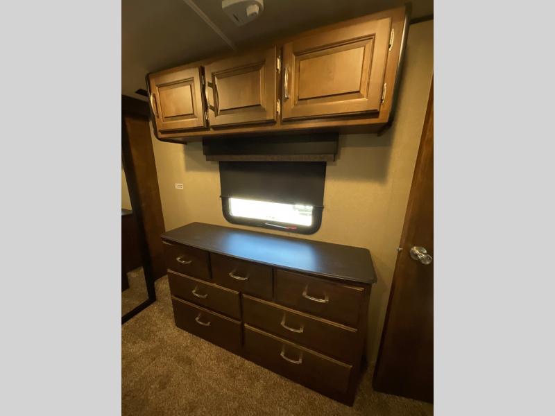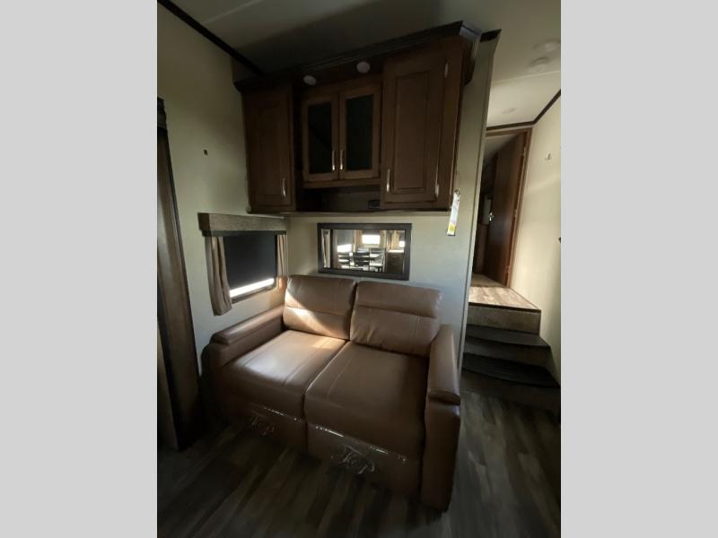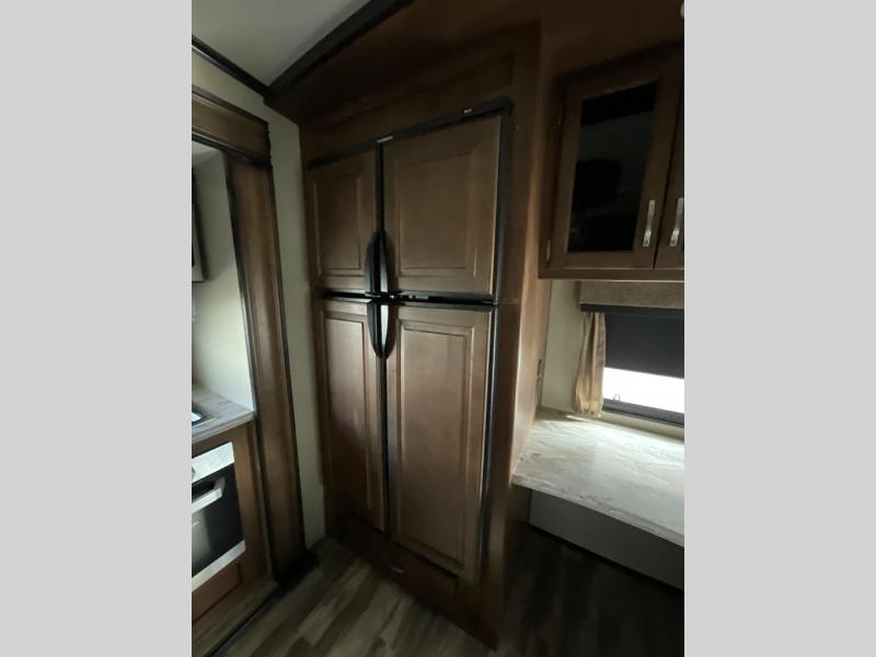 If you need to work while away from home, and enjoy cooking outside while watching TV, this Refection 320MKS is perfect for you! Just imagine cooking on the outdoor kitchen under the second awning while visiting with other campers. If you have to work, the desk in the rear of the fifth wheel is quite convenient. Your spouse can cook in the gourmet kitchen inside with a center island and large sink while planning your afternoon adventures until you are finished working. You will find plenty of storage throughout for hanging clothes, blankets and such in the drawers or overhead cabinets, plus there is an exterior unobstructed pass-through compartment that allows you to store larger items. So if you enjoy playing while working, this model allows you to do both in the great outdoors!