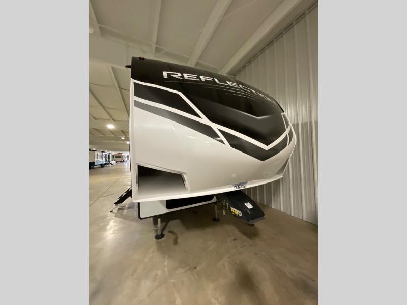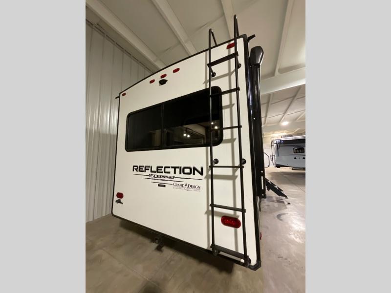 Each Reflection 150 Series fifth wheel by Grand Design allows you to use your half-ton and short bed truck to tow thanks to the 90 degree turning radius swivel pin box. The Universal All-In-One docking station, the LP Quick Connect, and the One-Touch automatic leveling system will make setting up and packing up easy for those weekenders or full-timers that like to move around to see the countryside. Inside you will love the Gunstock fixtures and hardware, the louvered tread steps to the bedroom, the large panoramic windows, plus the many features in the mandatory packages. It's time to reflect on your wise choice, choose a Reflection 150 Series today!