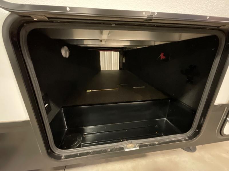 You can bring your pet along to enjoy the pet dish while you make meals in the kitchen and watch the 50" LED TV near by. The pantry and U-shaped dinette slide out opens up the floor space to enjoy the theatre seating with a massage feature and LED lights, and extra counter space to place your drink when you aren't using the cupholders. You even have an exterior refrigerator to store a few cold drinks and such while relaxing under the 17' power awning. When you need a potty break or to get cleaned up, the full bathroom offers a walk-in shower and everything you will need. The bedroom sliding door saves space so you can walk around the queen bed to get to your side of the storage, and there is an extra wardrobe for more items. You will find more storage throughout the inside, and the unobstructed pass-through compartment is handy for those larger outdoor items that you don't want to bring inside.