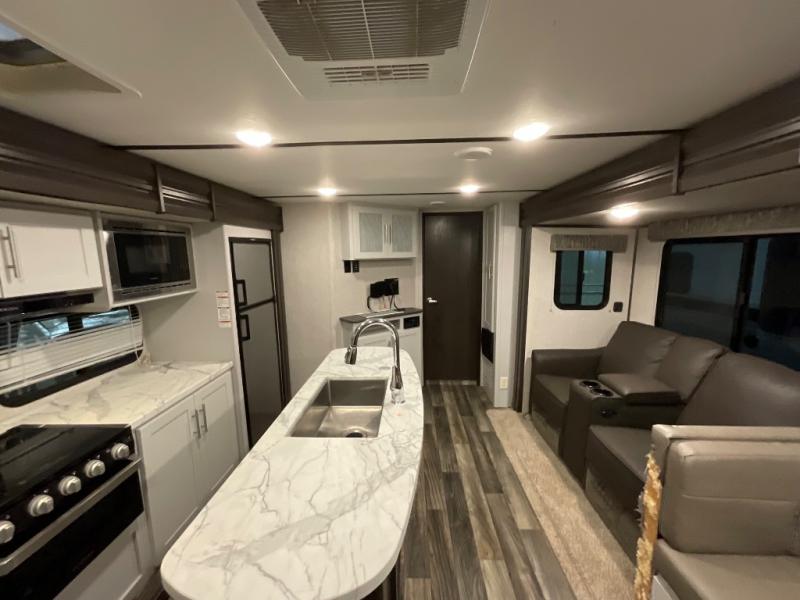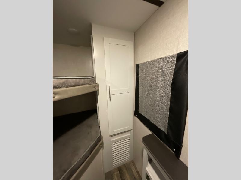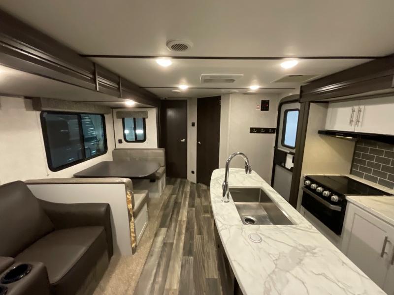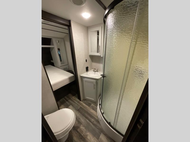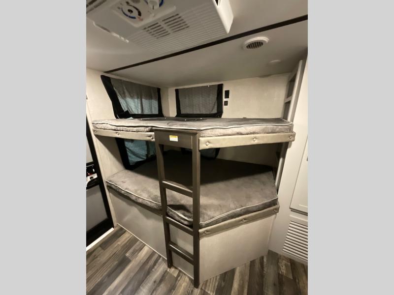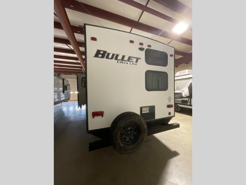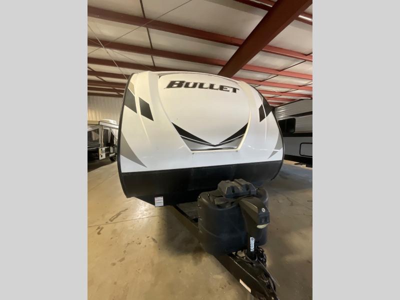 With any Bullet travel trailer by Keystone, you will appreciate the wide-stance Dexter E-Z Lube axles, the enclosed and heated underbelly, and the aggressive front profile for increased towability. Each model includes a 6 Cu. Ft. stainless steel double door refrigerator, ultra-durable Whitewater continuous-edge countertops, plus a stainless steel sink for easy clean-up. You'll enjoy hardwood entry doors into the bedroom, dual USB ports for tablet and phone, plus a laundry chute to make camping hassle-free. The Bullet features a variety of floorplans to fit your family's needs best. Choose your favorite layout today!
