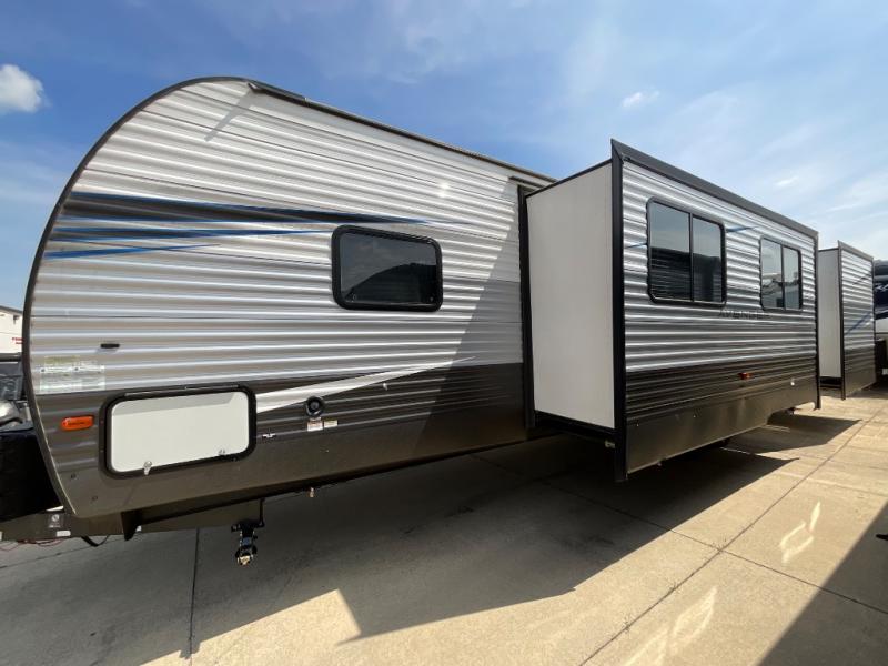 Take charge of your adventures in this fully loaded Avenger travel trailer! The whole family will be cared for throughout all of your many getaways with the private bunkhouse in the back and the private bedroom up front. The large slide in the main living area not only holds the U-shaped dinette and jackknife sofa, but it also adds more space to this area so that you can live freely. When you're working in the kitchen, you'll appreciate that this trailer comes with two pantries, and one of those pantries is even a walk-in pantry. You'll find it easy to access the outdoor kitchen because of the two entry doors, and with one of those doors leading directly into the full bathroom, you won't have to search far while you're playing outside.