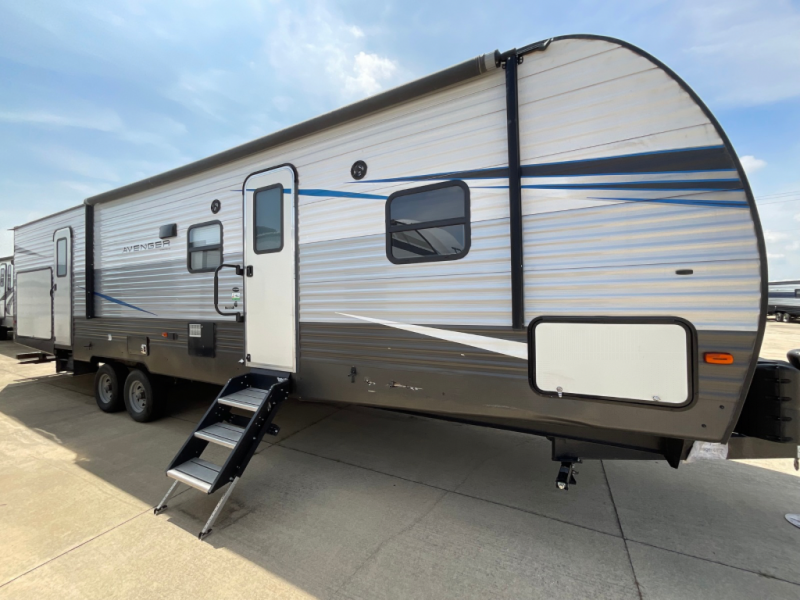 Don't waste any time getting out to your favorite getaway spot with an Avenger travel trailer from Prime Time RV! The Avenger will provide long-term quality and durability because of its exclusive EVERLAST construction, Dexter EZ-Lube axles, diamond-plate rock guard, and Solid Stance fold-down steps. Plus, the Avenger will also deliver industry-leading beauty on the interior with its designer window treatments, its seamless Carefree Congoleum flooring, its large fully vented windows throughout, and its premium fabrics. You will also be grateful to find a massive under-bed storage space so that you can keep extra luggage hidden away and out of sight.