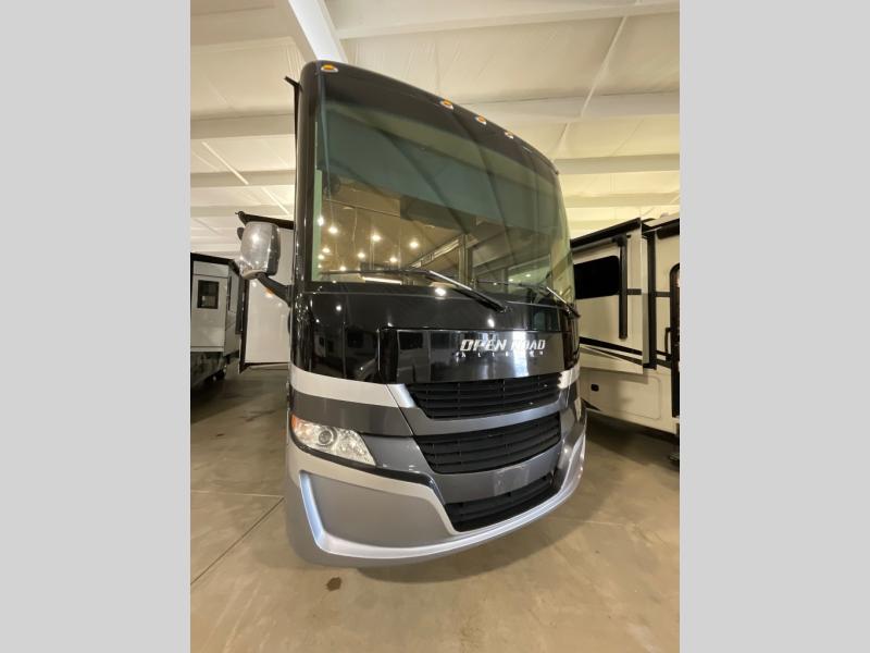 Each Open Road Allegro Class A gas coach by Tiffin Motorhomes offers a one-piece moisture resistant molded fiberglass roof cap providing insulation and strength, a durable and lightweight tubular aluminum wall skeleton, and fiberglass front and rear caps allowing you to enjoy your motorhome for many years to come. The multiplex Spyder Controls system allows you to monitor various tank levels and adjust electrical components of the coach from the comfort of one screen, and the hydraulic automatic leveling jacks make set up a breeze. The kitchen panoramic vista window offers you beautiful scenery, and the high gloss flat panel hardwood cabinet doors, solid wood cabinet fascias, and Ultraleather furniture gives you comfort and style, plus the home theater surround sound system with DVD player is another luxury feature you will enjoy. Start making a lifetime of memories with your own Tiffin Motorhomes Open Road Allegro Class A gas motorhome!