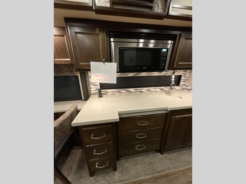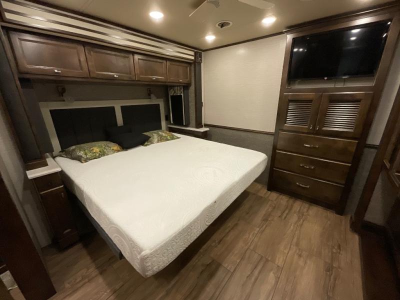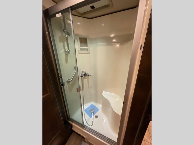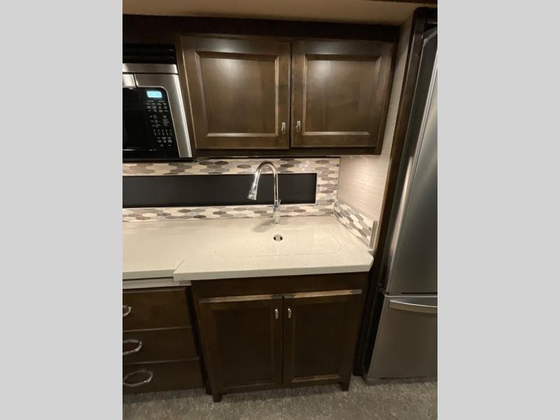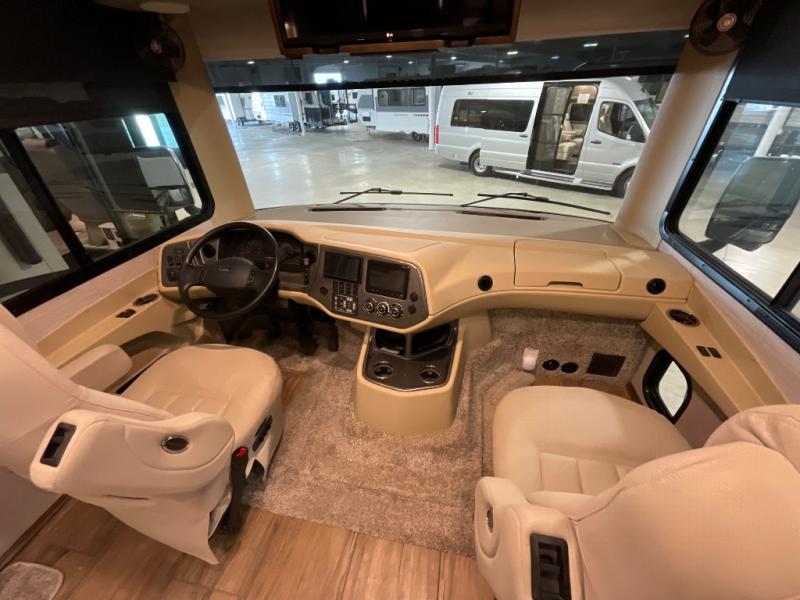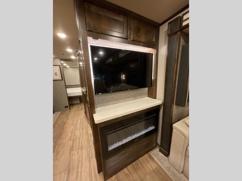 There are plenty of standard features and options to make this motorhome exactly what you want! From the optional drop down bunk over the front Ultraleather power driver and passenger seats and the optional dinette with a computer workstation that can be replaced for the booth dinette to the optional washer and dryer area inside the bathroom. You can even choose to add the optional fireplace below the flat panel TV for even more comfort as you relax on the sofa bed slide out. The rear private bedroom comes standard with a 60" x 80" queen-size memory foam mattress but if you want something bigger then you can switch it out for the optional king-size mattress instead. Yet you might decide the RV is perfect just as it comes!