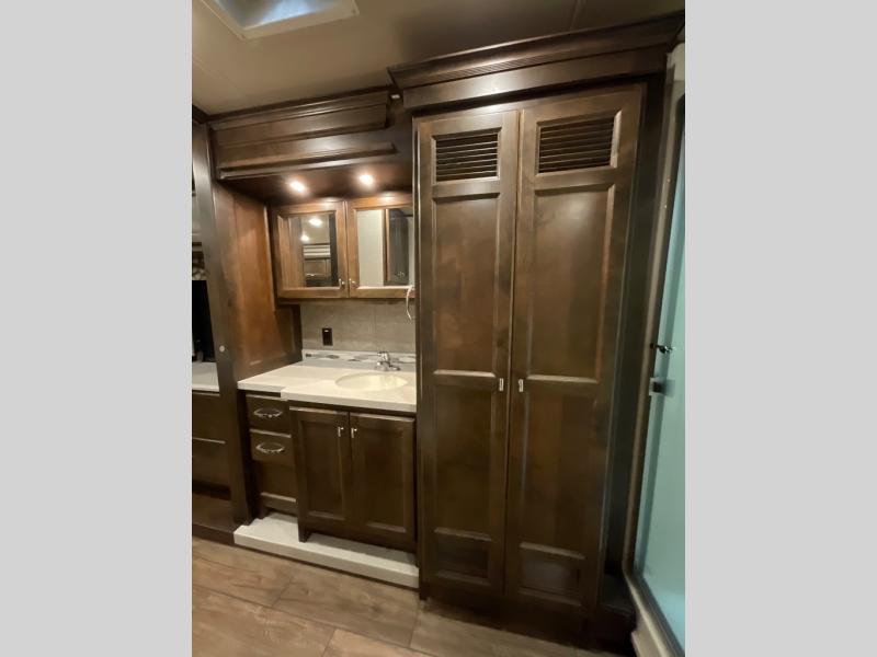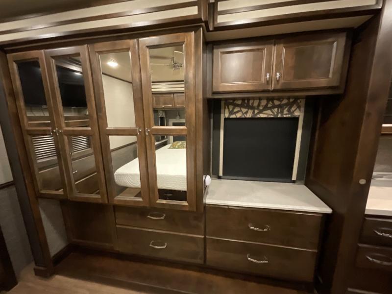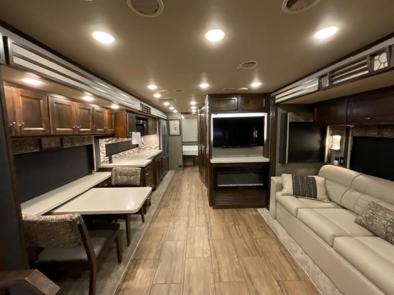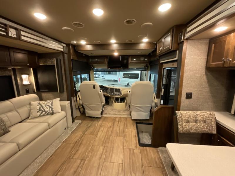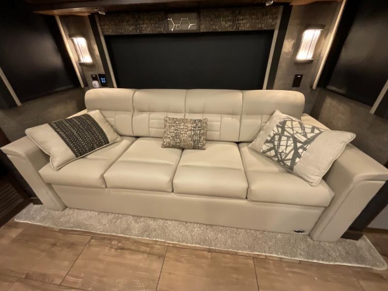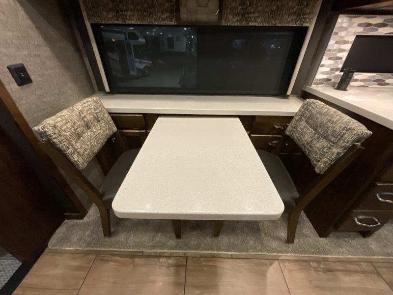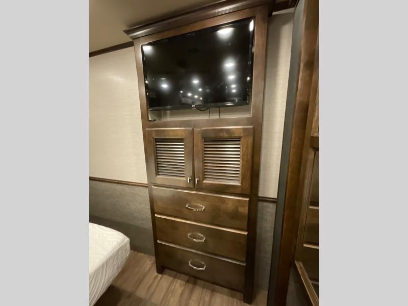 There are plenty of standard features and options to make this motorhome exactly what you want! From the optional drop down bunk over the front Ultraleather power driver and passenger seats and the optional dinette with a computer workstation that can be replaced for the booth dinette to the optional washer and dryer area inside the bathroom. You can even choose to add the optional fireplace below the flat panel TV for even more comfort as you relax on the sofa bed slide out. The rear private bedroom comes standard with a 60" x 80" queen-size memory foam mattress but if you want something bigger then you can switch it out for the optional king-size mattress instead. Yet you might decide the RV is perfect just as it comes!