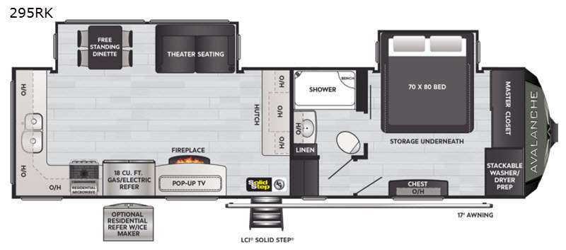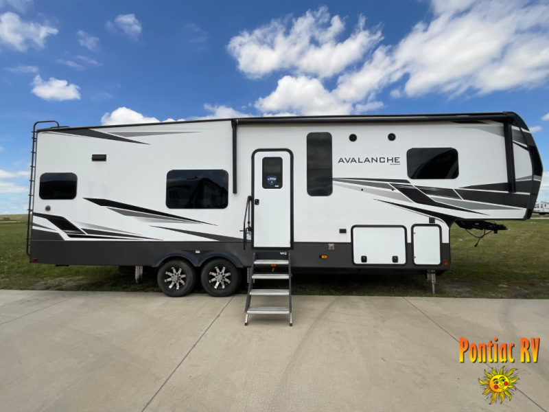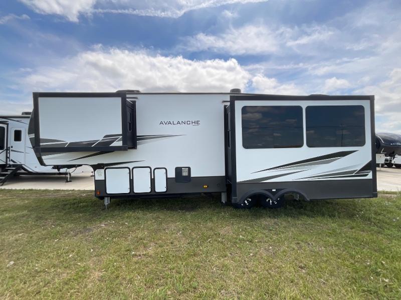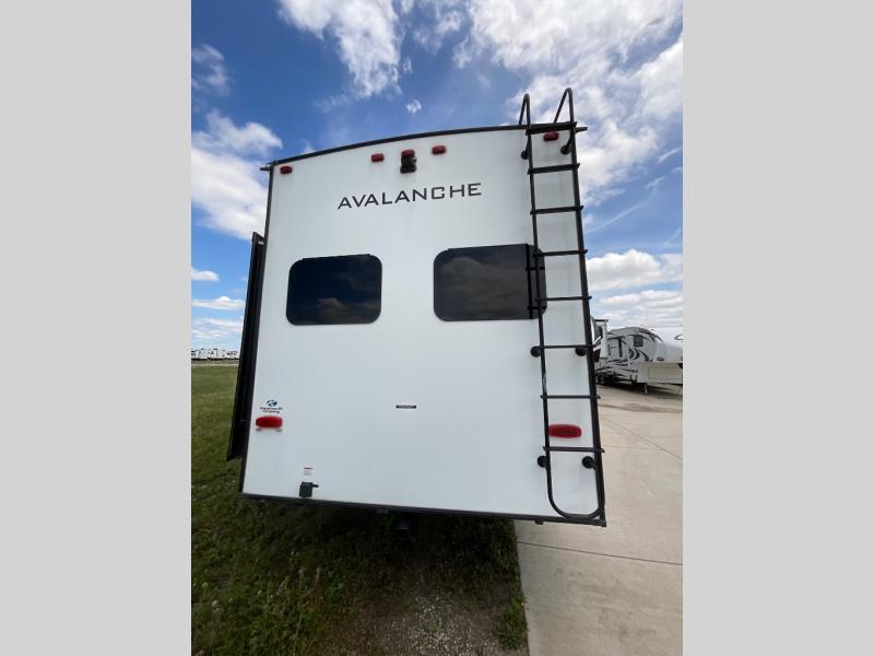 With any Keystone luxury full-profile Avalanche fifth wheel, you can experience wide-body construction that allows you to stretch out and stay awhile during any season thanks to the Polar Pack All Season Protection that includes a heated and enclosed underbelly, an Astro foil reflective layer on the roof, front and rear walls, and two static attic vents, plus more! The interior offers grained soft gray wood throughout and polished natural stone solid surface countertops, plus your choice of modern interior design. There are many more Keystone exclusives, plus standard and optional features that will allow you to choose the perfect RV for you!