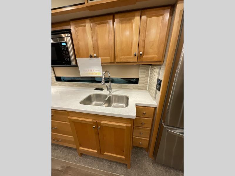 You won't believe how much style and class comes with this Allegro RED Class A diesel motorhome! From the rear master suite to the four flat-panel TVs, this coach is decked out with modern and accommodating amenities. The bunk beds will catch your attention because they will allow you to offer some extra sleeping space to any friends or family that want to join you on the road, yet they don't take up much space. The kitchen is also going to be a favorite of yours with its expand-an-island, residential refrigerator, convection microwave, and double-bowl sink. You can also make this coach even more residential by adding the optional fireplace in the main living area.