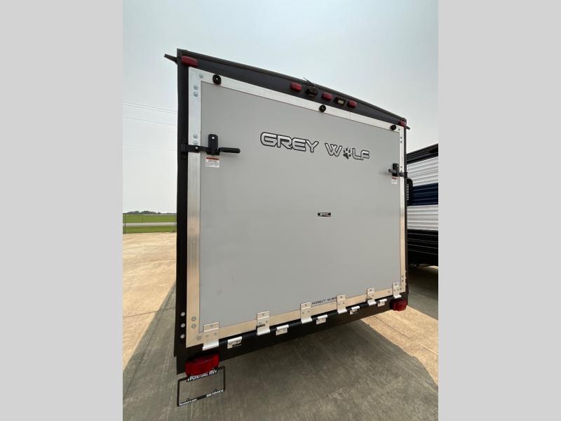 Whether it's a journey that will take you to new locations or a tried-and-true getaway to that favorite and memorable destination, the Forest River Cherokee Grey Wolf travel trailers and toy haulers are going to make the trip worth it every single time! You can travel in confidence with the premium wheel package, seamless roofing membrane with heat reflectivity, Power Gear frame technology with space-saver rail design, and Cherokee back-up camera system. The Cherokee Grey Wolf's interior is highly attractive with its stainless steel kitchen suite package, premium bedding ensemble and comforter, and 8" ceiling-mounted subwoofer with accent lighting. You will also find a black waste tank flush-out kit, an outside shower with hot and cold water, an armored underbelly tank enclosure, a power tongue jack, and an RV grill quick connect.
