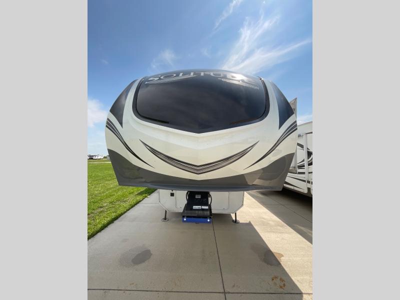 With any Solitude fifth wheel by Grand Design, you will get maximum insulation from the thermal roof design, the exclusive fully laminated walls, the triple insulated main floor, the Rail-Tite underbelly seal, the insulated gooseneck and the insulated baggage doors. The MORryde rubber pin box system utilizes a unique rubber shear spring to positively deal with rough towing and road shock, the Tire Linc TPMS system monitors pressure and temperature, and the 6-point hydraulic system allows you to setup easily. And the upgraded shower system, the hardwood window valances, the oversized kitchen pantry, the window above the master bed headboard, and the Rockford Fosgate stereo entertainment system with HDMI and App controls are a few more reasons you will love these extended-stay fifth wheels!