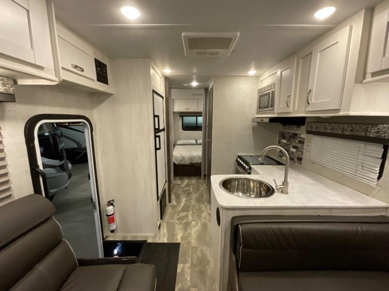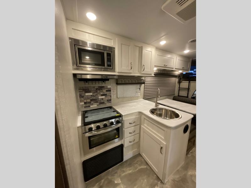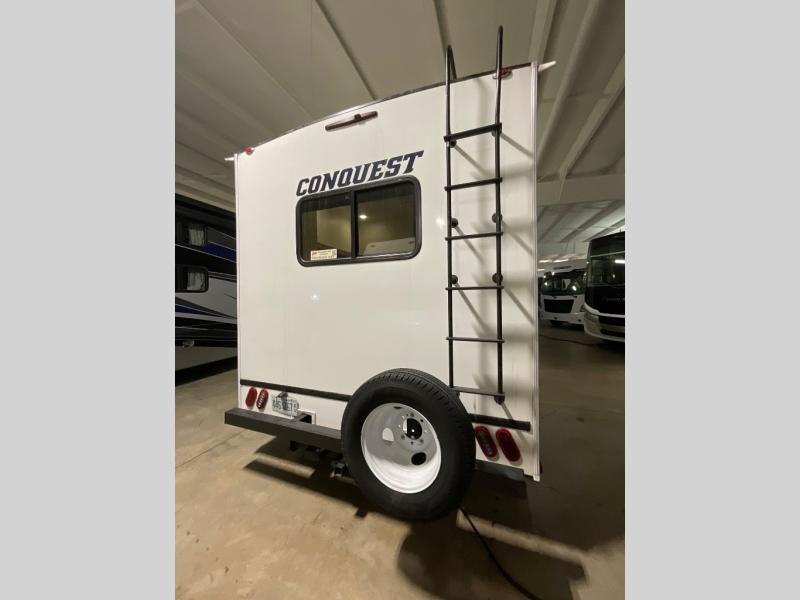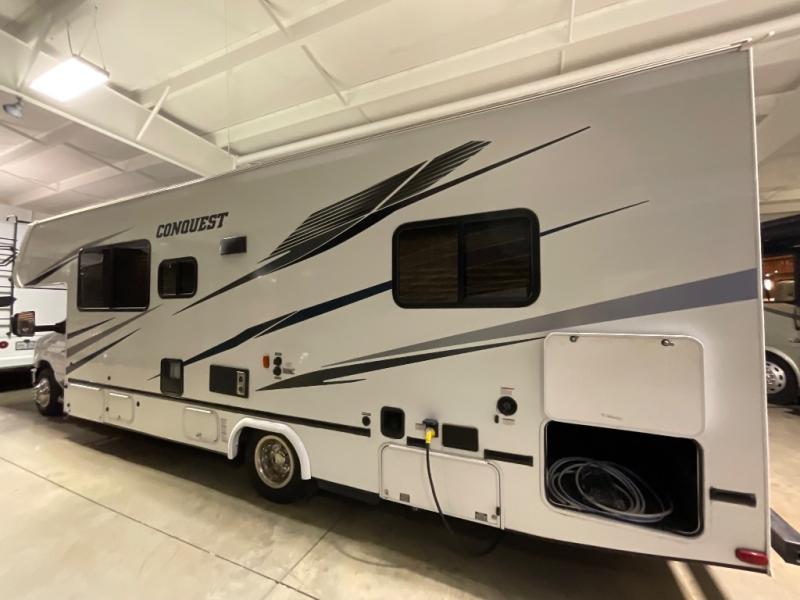 Have you been daydreaming about having your own RV with a walk-around RV queen bed that includes storage on either side and privacy from the rest of the unit? This Conquest Class C gas motorhome offers just that and then some! From the separated bath that has an en-suite bath door and kitchen area where the kids are playing games at the booth dinette, you will enjoy all of the aspects of this coach. The chef of your group is probably whipping up brownies in the kitchen on the flip-up countertop before deciding what is for dinner. You will also find plenty of storage and sleeping space.