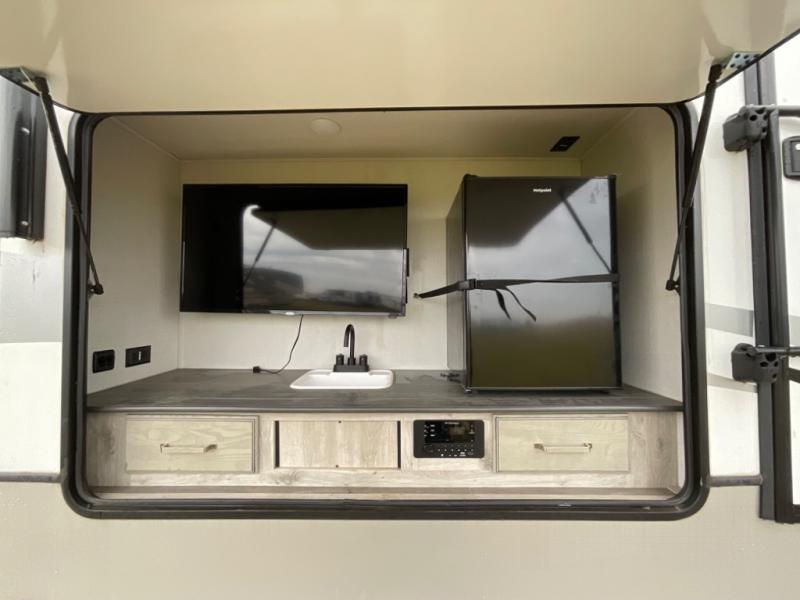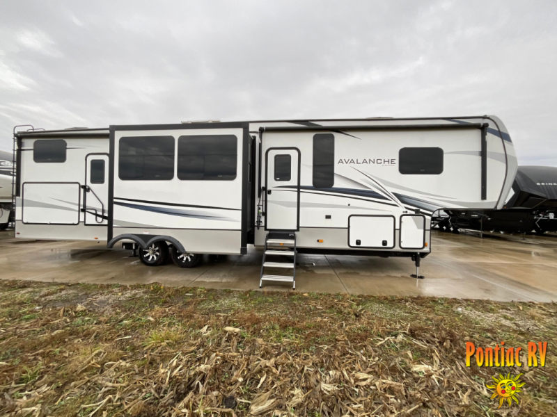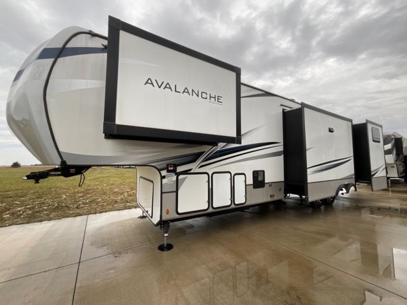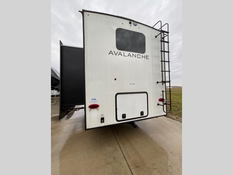 You won't believe how many extravagant details have been included in this Avalanche fifth wheel! Traveling with guests or extended family will be easy to do with the separate bunkhouse suite and master suite. Since the master suite has its own master closet and entrance into the full bathroom, and the bunkhouse contains its very own half bathroom, everyone will have their own private space to get ready each morning. On top of that, you will also be able to choose where you want to prepare and cook each day's meals with both a spacious indoor kitchen with full amenities, plus an outdoor kitchen. There is even an outdoor entertainment center with TV. You can also add an option or two such as a washer/dryer and/or a residential refrigerator. And there is so much more to love about this fifth wheel!