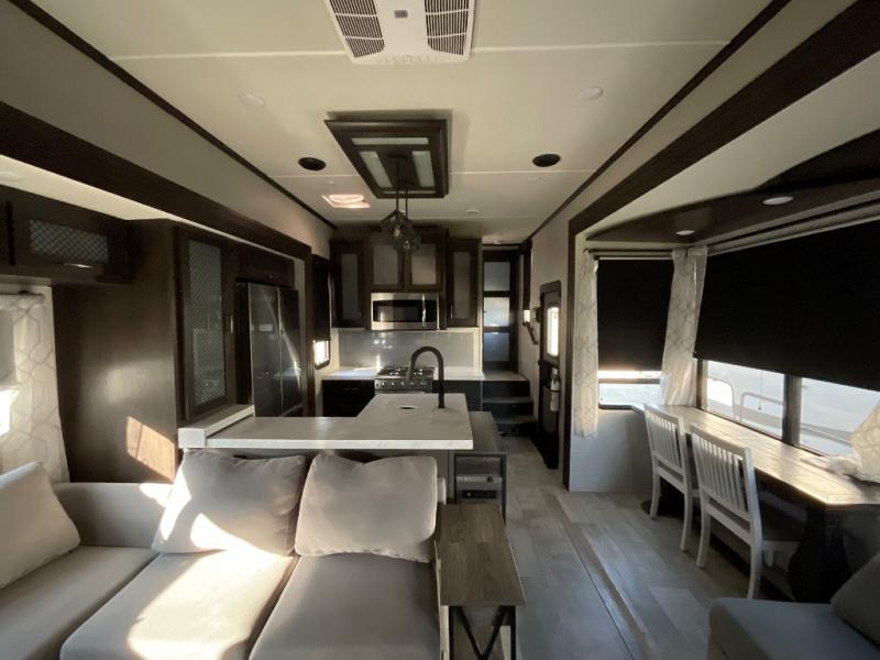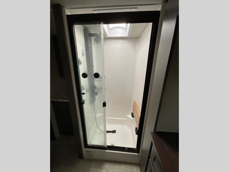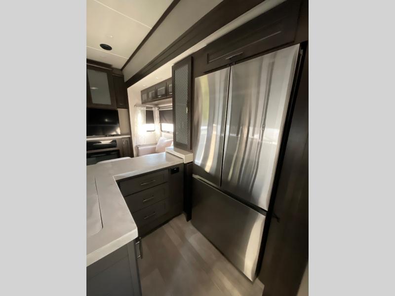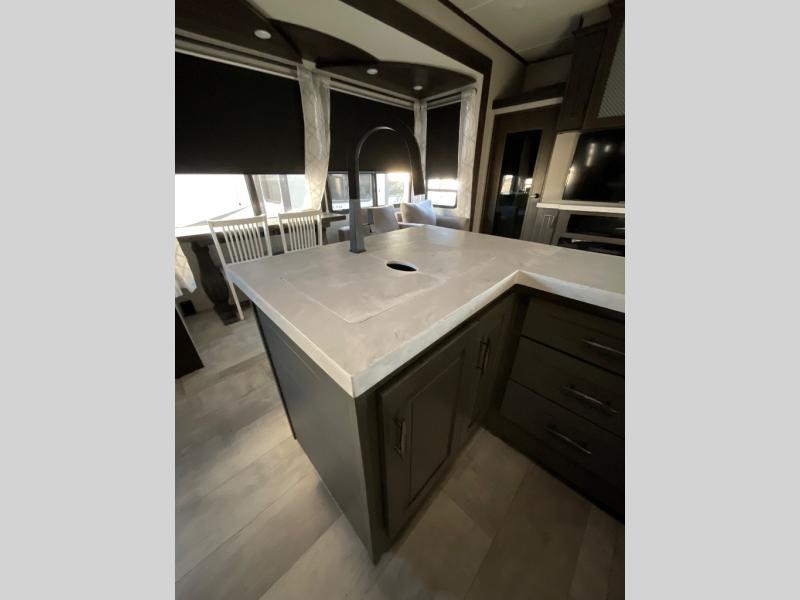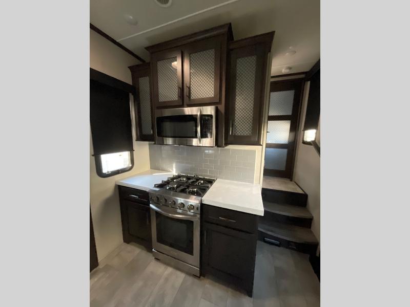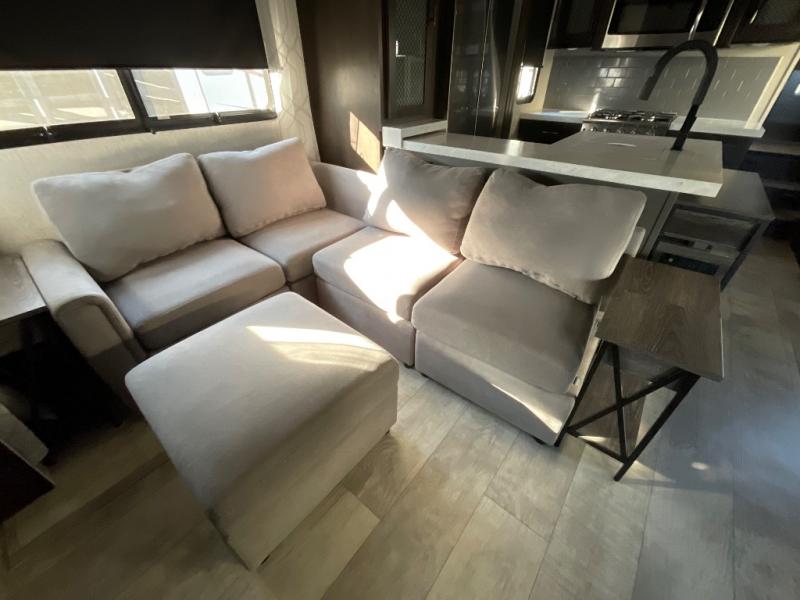With any Momentum M-Class toy hauler by Grand Design, you will enjoy luxury at every turn! They have been constructed to a superior standard with a thermal roof design, triple insulated main floor and garage floor, and a Rail-Tite underbelly seal that will allow you to camp in all elements. Each model also features an 8' 5" wide body chassis with a wide rail design, no wheel wheels, and a dovetail entry for easier loading. The Stealth A/C system provides maximum cooling power, and the CRE3000 suspension system means you can enjoy a smooth tow each time. You will love the luxurious interior with a professional grade stainless steel cooktop, interior color changing LED accent lighting, a fiberglass shower with a glass door, and solid surface countertops.