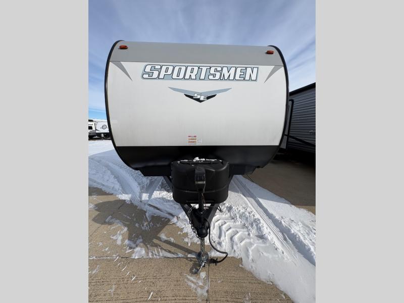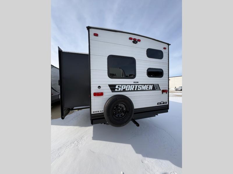 Each Sportsmen SE travel trailer and toy hauler by KZ is constructed with KZ exclusive tough shield exterior metal, a one-piece seamless walk-on Tufflex roofing material, and diamond plate rock guard to protect your unit from road debris. You will appreciate the extra large baggage doors for stowing away your gear when not in use, and tinted windows to help keep the harmful sun rays out plus keeping it cooler inside. Some of the exterior conveniences found in the mandatory Advantage Package are the solid folding steps with large folding grab handle for easy entry and exit, a power tongue jack for ease in setting up your unit, plus an exterior shower for your pets or to rinse off before you head inside. You'll also appreciate the nitrogen-filled tires, solar and backup camera prep, plus a Leash Latch with a bonus beverage opener. You'll feel right at home inside with linoleum flooring throughout, a 13,500 BTU air conditioner, large overhead cabinets, a shower surround, and much more!