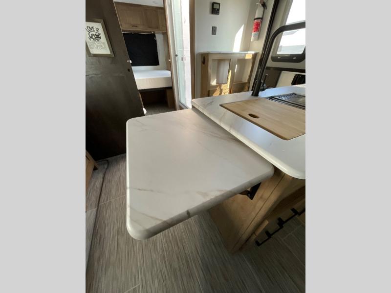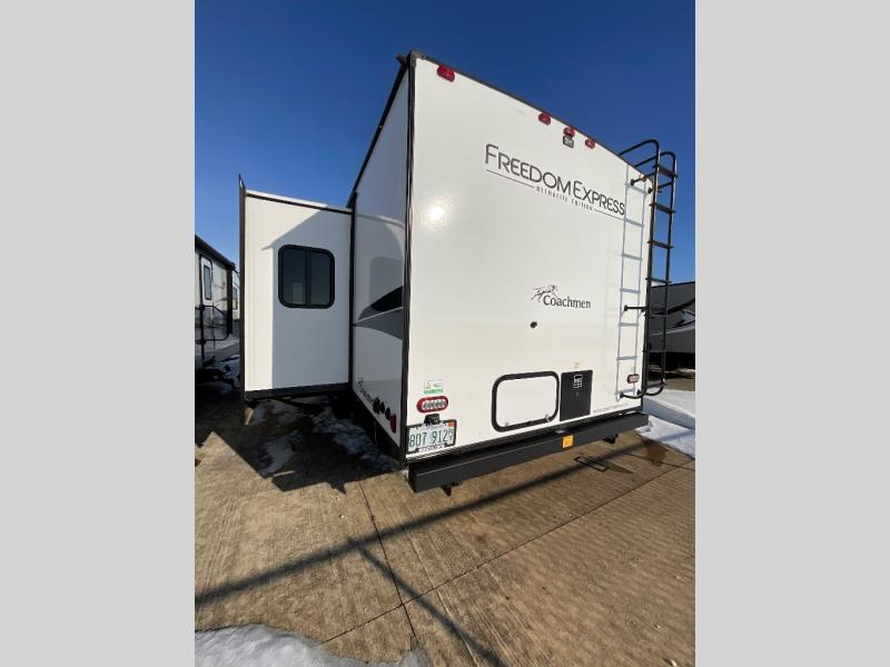 With any Freedom Express Ultra Lite travel trailer by Coachmen you will appreciate quality construction materials, such as vacuum bonded walls with Azdel composite, a 3/4 gel coated fiberglass cap with an automotive glass windshield, and a heated enclosed underbelly. Each model also features Tufflex PVC roofing, front rock guard, and E-Z Lube axles for smooth towing. Inside, you'll find kitchen backsplash, hidden hinge cabinetry, and wear-resistant vinyl flooring throughout. The power tongue jack included with the Ultra Lite Express Package will make set-up a breeze, and each model includes back-up camera prep and they are Freedom solar ready if you plan to go off-grid. Enjoy lightweight camping with a Freedom Express Ultra Lite travel trailer today!